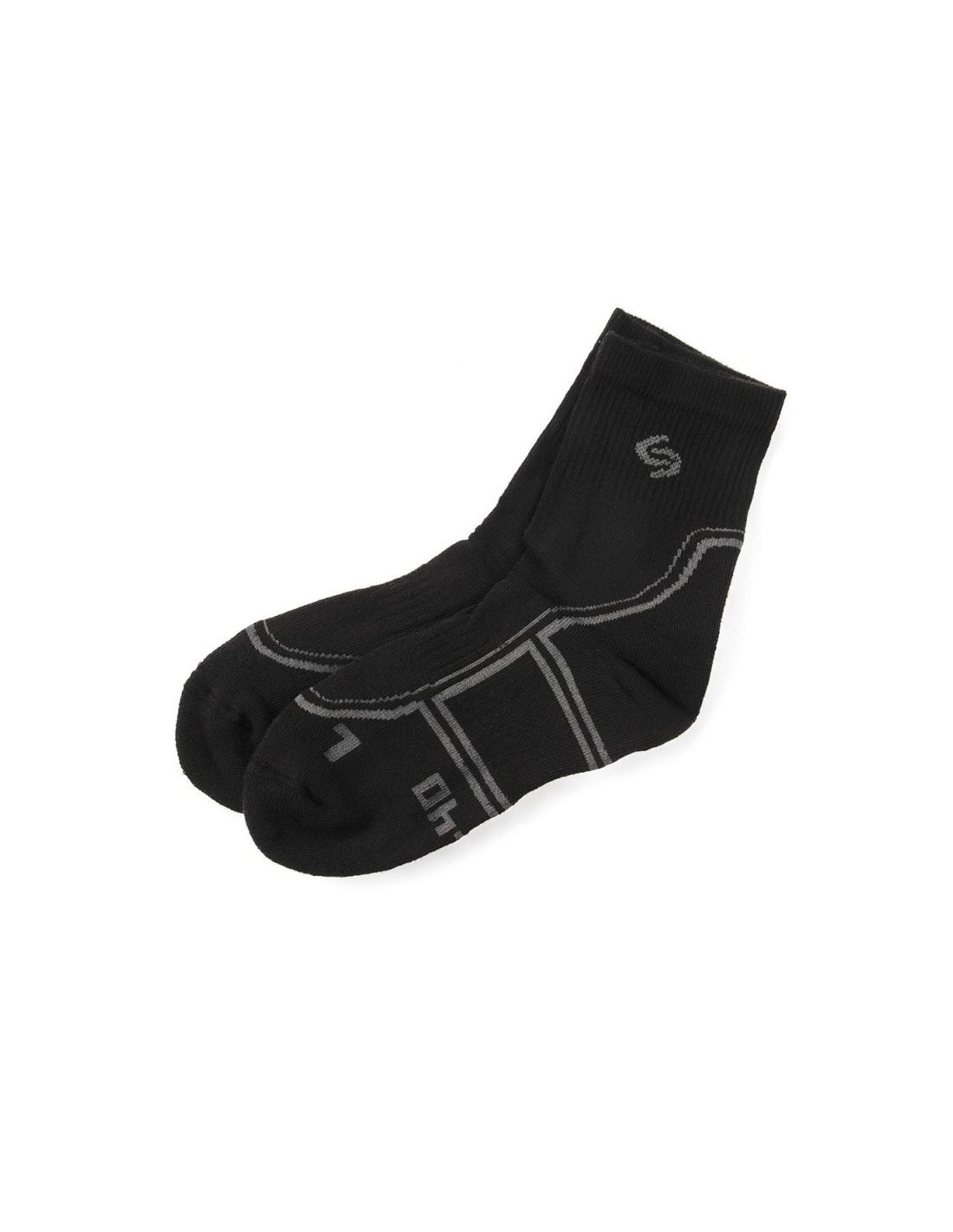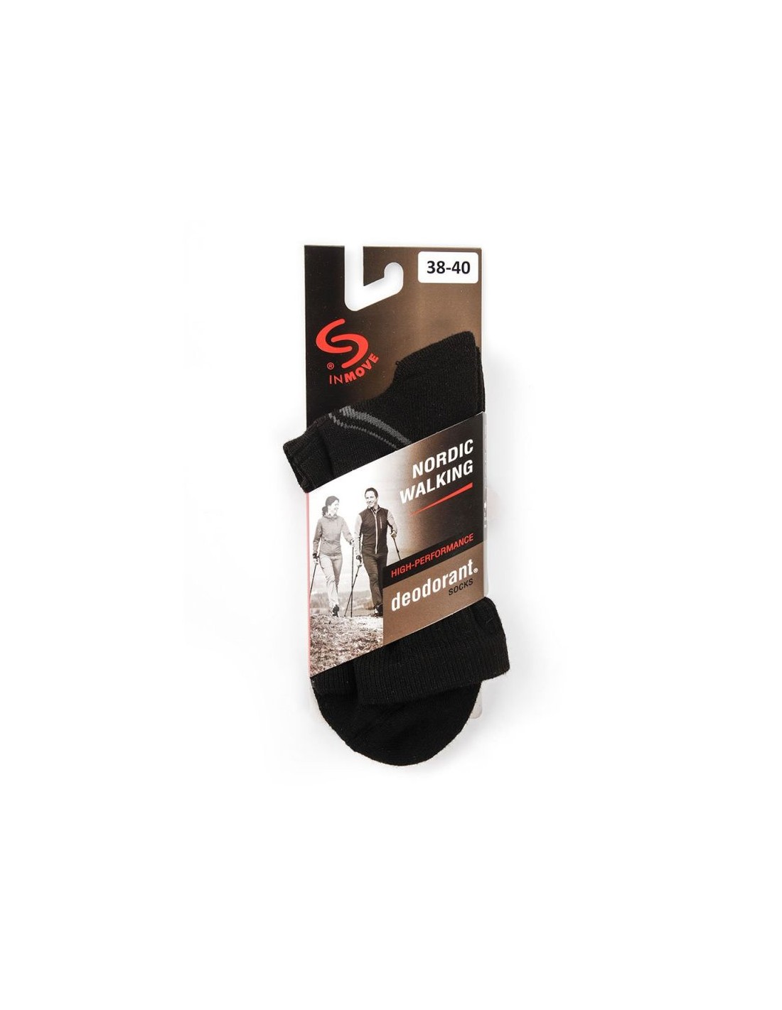 Κάλτσες για σκανδιναβικό περπάτημα και πεζοπορία. Τριφασική, εσωτερική πετσετέ με προφίλ απορροφά τους κραδασμούς και προστατεύει τα ευαίσθητα μέρη του ποδιού από εκδορές και τραυματισμούς. Η μοναδική, καινοτόμος κατασκευή των ινών νήματος COOLMAX ® εξασφαλίζει μέγιστη άνεση χρήσης, διατηρώντας τη σωστή θερμοκρασία και απομακρύνοντας την υγρασία. Χάρη σε αυτό, το πόδι έρχεται σε επαφή με μαλακό, πάντα στεγνό πλεκτό. Εάν οι κάλτσες βραχούν, ο χρόνος στεγνώματος είναι πολύ μικρότερος από ό,τι για τις βαμβακερές κάλτσες, γεγονός που είναι σημαντικό όταν χρησιμοποιούνται σε ακραίες συνθήκες. Οι κάλτσες προσαρμόζονται στο ανατομικό σχήμα του αριστερού (L) και του δεξιού (R) ποδιού μέσω ενός κατάλληλα διαμορφωμένου τμήματος από πετσετέ. Το LYCRA ® σε όλο το προϊόν εξασφαλίζει άριστη πρόσφυση στο πόδι. Μια ελαστική ζώνη στο μέσο του ποδιού αποτρέπει την ολίσθηση της κάλτσας κατά την κίνηση. Κατάλληλα διαμορφωμένη πλέξη στη φτέρνα (σχήμα "Y"), προσκολλάται τέλεια στο πόδι και σταθεροποιεί την κάλτσα. Οι εγκάρσιες λωρίδες διευκολύνουν την τοποθέτηση της κάλτσας στην κάμψη του ποδιού. Το τμήμα της κάλτσας που δεν φέρει φορτίο πάνω από το πόδι είναι λεπτότερο, το οποίο, σε συνδυασμό με το νήμα COOLMAX ®, επιταχύνει σημαντικά τη μεταφορά υγρασίας. Η άνεση συμπληρώνεται από μια επίπεδη, μαλακή ραφή "Rosso" πάνω από τα δάχτυλα των ποδιών. Το φινίρισμα SANITIZED ® παρέχει αποτελεσματικές αντιβακτηριακές, αντιμυκητιασικές και αντιοσμητικές ιδιότητες.