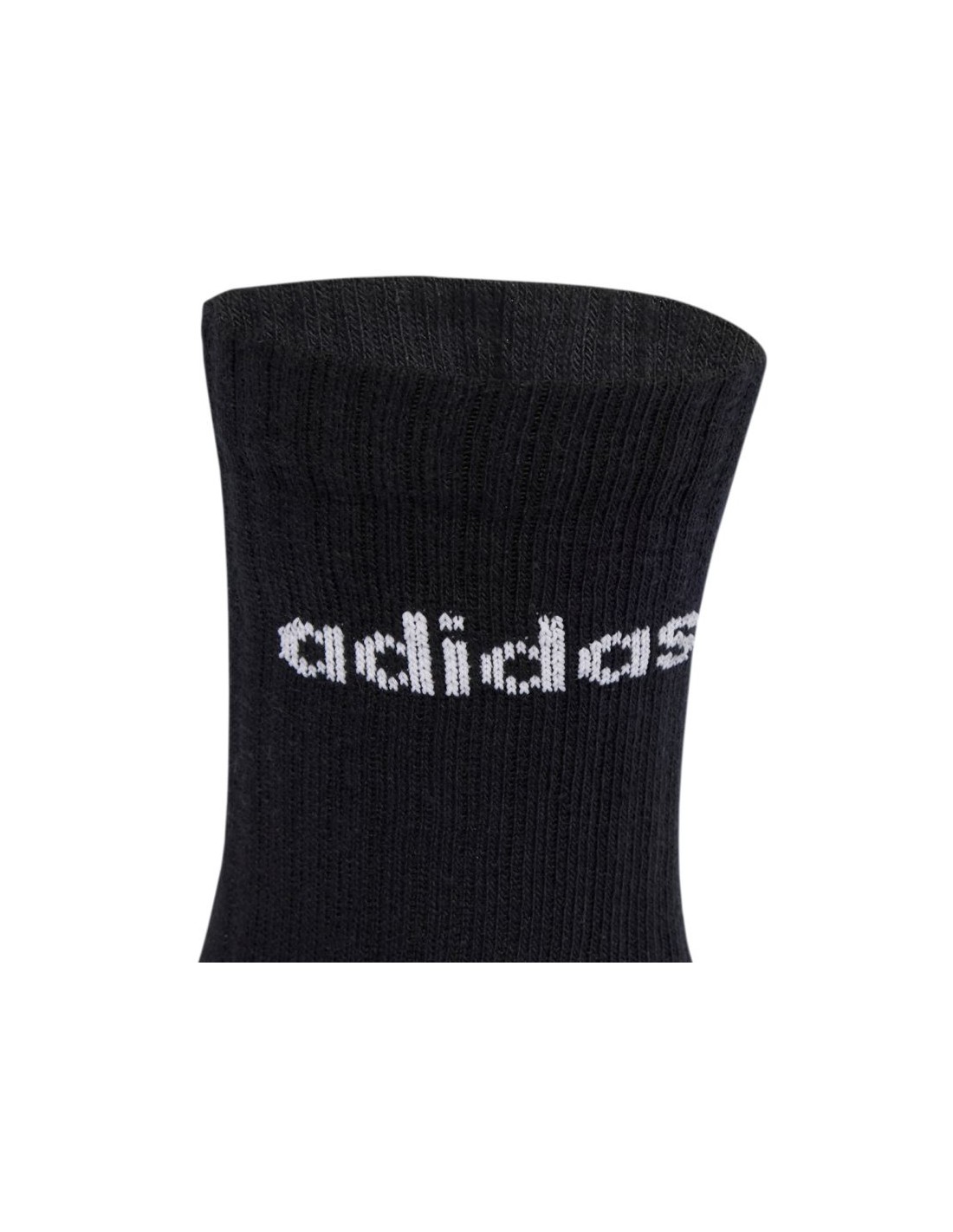 Adidas Linear Crew Socks Cushioned 6 Pair Pack, Black JL6094. These adidas sports socks feature a soft knit fabric and a fitted calf design. The elastic, high cuff provides a comfortable fit and helps keep the socks in place. These adidas socks feature a subtle brand logo. Each set includes 6 pairs of socks. Material: 100% nylon.