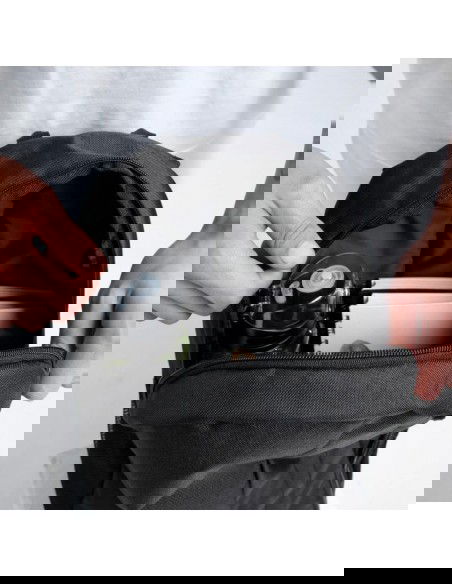 - Η δεύτερη, με φερμουάρ τσέπη με δομή πλέγματος στο πλάι προορίζεται για παπούτσια.