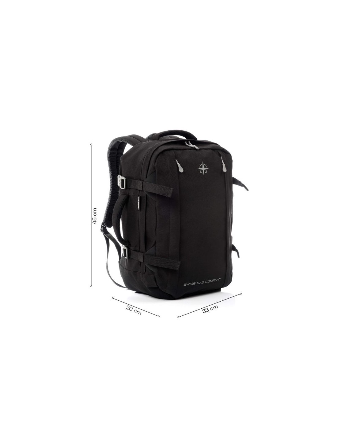The SwissBags Cointrin backpack is a reliable companion for every trip, perfectly sized to fit most airlines' carry-on luggage requirements, measuring 45x33x20 cm. Made of high-quality polyester, it guarantees durability and resistance to damage, and its 35-liter capacity allows for plenty of space for all your essentials.