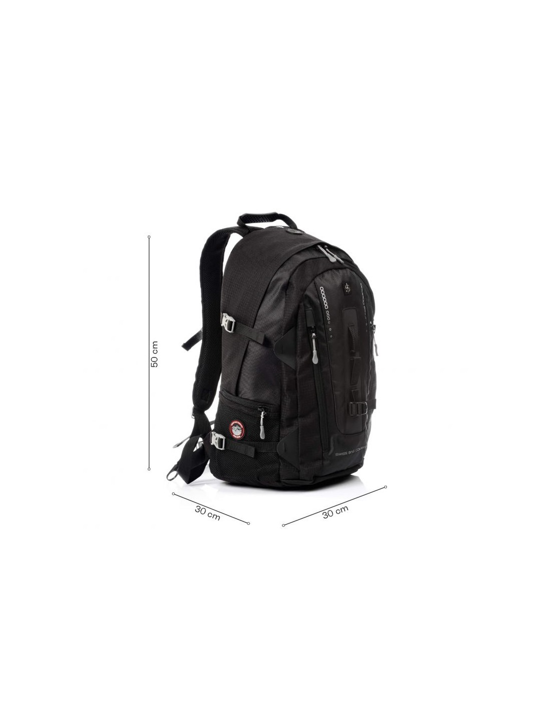 - It is equipped with special fasteners on the front, a beautiful Swiss logo and 2 zippered compartments.