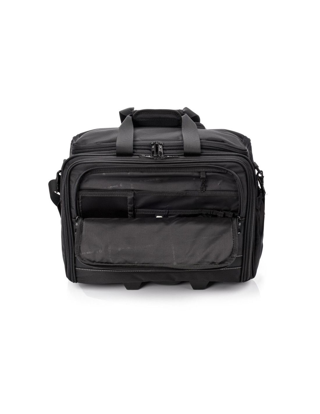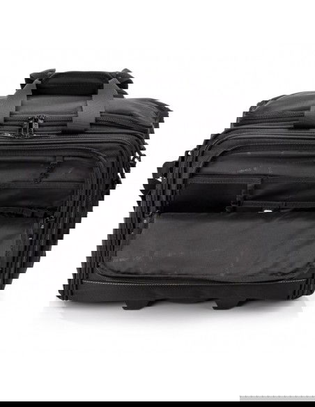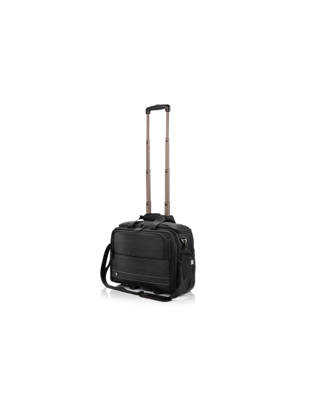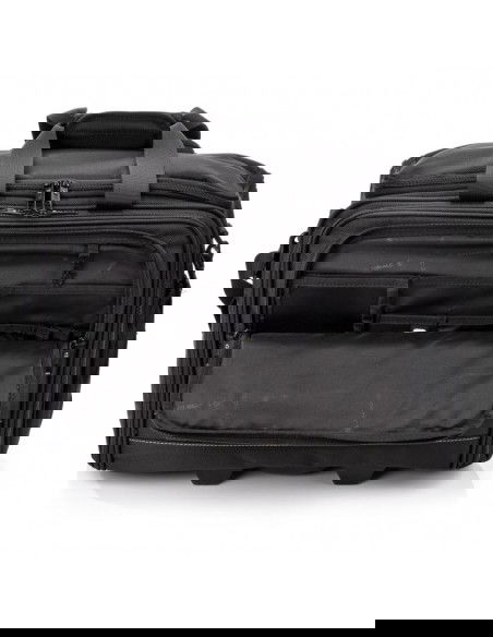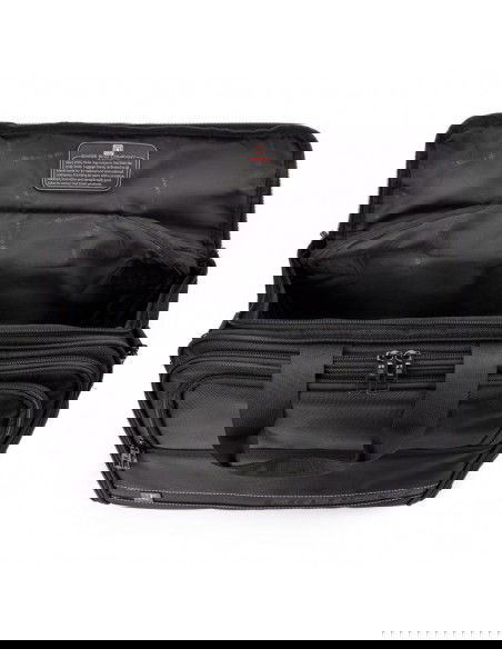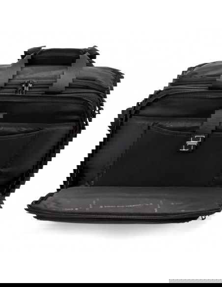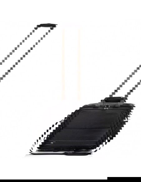 SwissBags wheeled travel bag Properties: The SwissBags A320 trolley travel bag is a modern business bag on wheels, perfect for traveling by train or car. Its dimensions of 45x36x20cm meet the requirements of most airlines, so it can also be used as carry-on luggage placed under the seat during air travel. This 30-liter bag offers space for storing clothing, documents, electronics, and essential accessories. Each compartment has a specific purpose and allows you to fully utilize the bag's space. The largest pocket offers space for clothes. Another pocket has a padded compartment for a laptop up to 17" and a second compartment for a tablet up to 10". Both compartments are padded to provide maximum protection against damage during travel. The large front zippered pocket features an organizational panel: one larger compartment for documents, two pockets for electronic devices such as a phone or power bank, business cards, pens, and a key ring. There's a small zippered pocket on the side and a drinks holder on the opposite side. The bag also features a retractable, double-frame telescopic handle for comfortable carrying. When folded, it can be stored in a dedicated pocket. A special suitcase hook has been designed on the back, making transporting the bag effortless, regardless of the load. Quiet wheels from the Japanese brand Hinomoto ensure a smooth ride and easy portability. The bag also features a double handle, an adjustable shoulder strap, and two-way zippers for safe and comfortable carrying. The durable material ensures water resistance and protection against scuffs and damage. The strong polyester fabric ensures comfortable travel in all weather conditions. Thanks to the material's flexibility, the bag can accommodate a variety of essentials and accessories. The product warranty is 3 years.   Convenient transport – a specially designed telescopic handle and a suitcase attachment point allow for easy transport. This allows you to effortlessly navigate crowds. Practical – a variety of compartments helps you stay organized. Everything you need is always at hand. Space organization – specially designed pockets allow for proper luggage organization. You can carry not only your laptop but also the clothes you'll need for a multi-day trip. Safe materials – special interior padding ensures safe storage and transportation. Your laptop is protected in a padded compartment, and each compartment is closed with a double zipper.