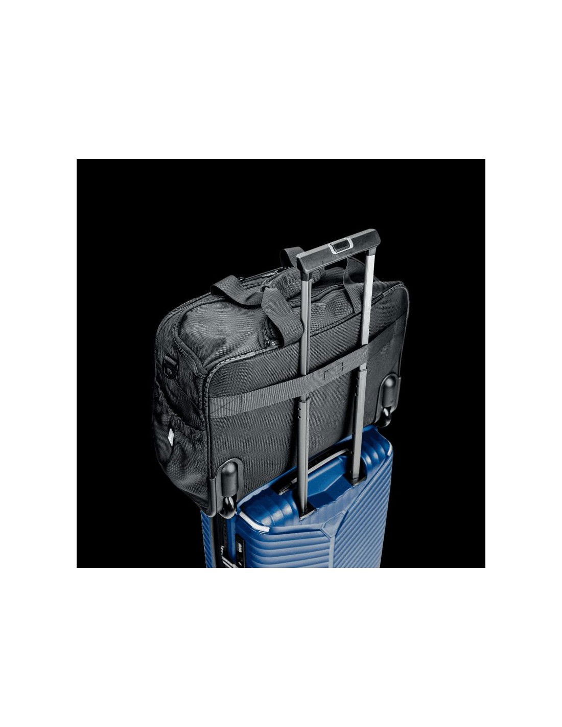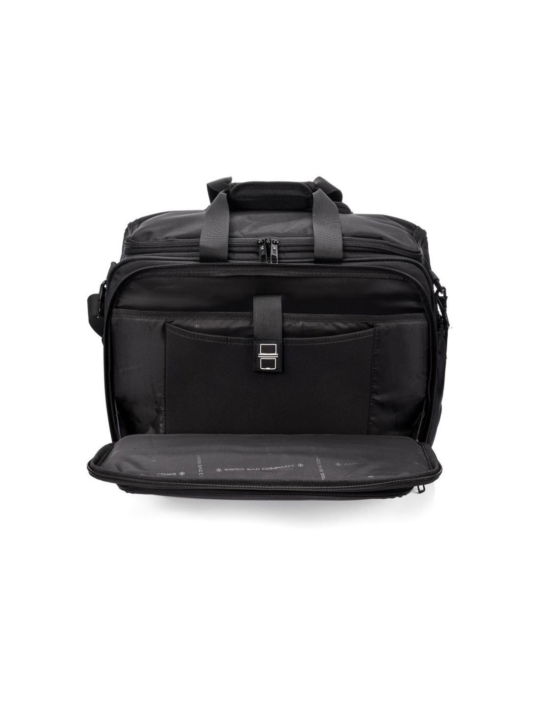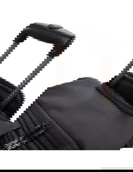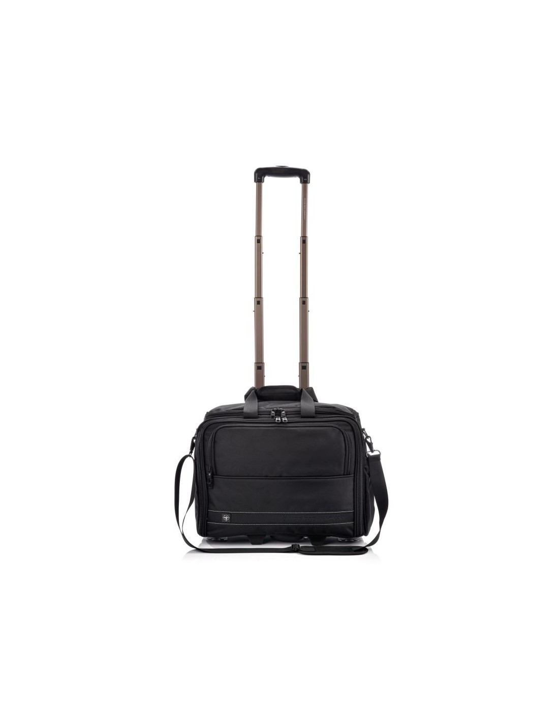 SwissBags wheeled travel bag Properties: The SwissBags A320 trolley travel bag is a modern business bag on wheels, perfect for traveling by train or car. Its dimensions of 45x36x20cm meet the requirements of most airlines, so it can also be used as carry-on luggage placed under the seat during air travel. This 30-liter bag offers space for storing clothing, documents, electronics, and essential accessories. Each compartment has a specific purpose and allows you to fully utilize the bag's space. The largest pocket offers space for clothes. Another pocket has a padded compartment for a laptop up to 17" and a second compartment for a tablet up to 10". Both compartments are padded to provide maximum protection against damage during travel. The large front zippered pocket features an organizational panel: one larger compartment for documents, two pockets for electronic devices such as a phone or power bank, business cards, pens, and a key ring. There's a small zippered pocket on the side and a drinks holder on the opposite side. The bag also features a retractable, double-frame telescopic handle for comfortable carrying. When folded, it can be stored in a dedicated pocket. A special suitcase hook has been designed on the back, making transporting the bag effortless, regardless of the load. Quiet wheels from the Japanese brand Hinomoto ensure a smooth ride and easy portability. The bag also features a double handle, an adjustable shoulder strap, and two-way zippers for safe and comfortable carrying. The durable material ensures water resistance and protection against scuffs and damage. The strong polyester fabric ensures comfortable travel in all weather conditions. Thanks to the material's flexibility, the bag can accommodate a variety of essentials and accessories. The product warranty is 3 years.   Convenient transport – a specially designed telescopic handle and a suitcase attachment point allow for easy transport. This allows you to effortlessly navigate crowds. Practical – a variety of compartments helps you stay organized. Everything you need is always at hand. Space organization – specially designed pockets allow for proper luggage organization. You can carry not only your laptop but also the clothes you'll need for a multi-day trip. Safe materials – special interior padding ensures safe storage and transportation. Your laptop is protected in a padded compartment, and each compartment is closed with a double zipper.