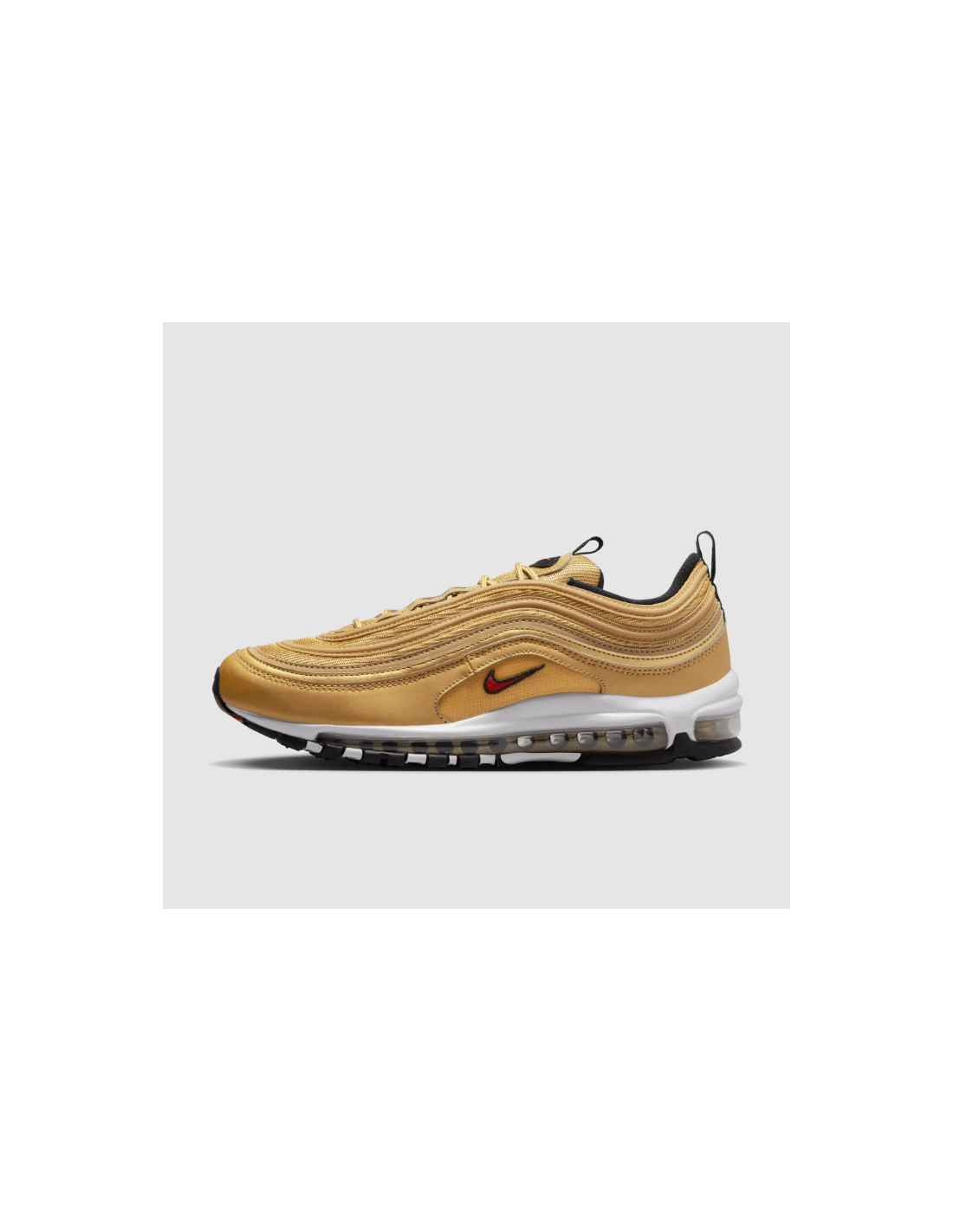 Τα παπούτσια Nike Air Max 97 Golden Bullet Gold M DM0028700 διαθέτουν επίσης το διακριτικό λογότυπο της Nike στην εξωτερική τους επιφάνεια, προσθέτοντας μια επιπλέον νότα στυλ στην εμφάνισή σας. Επιπλέον, αναφέρεται ότι το μέγεθος του προϊόντος είναι Medium (M).
