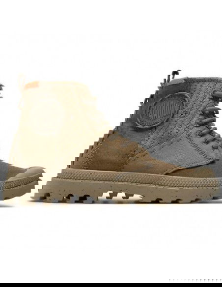 - Palladium Pampa Hi Re Generate Dusky Green είναι ένα καινοτόμο μποτάκι αστραγάλου που συνδυάζει στυλ, άνεση και οικολογική υπευθυνότητα.