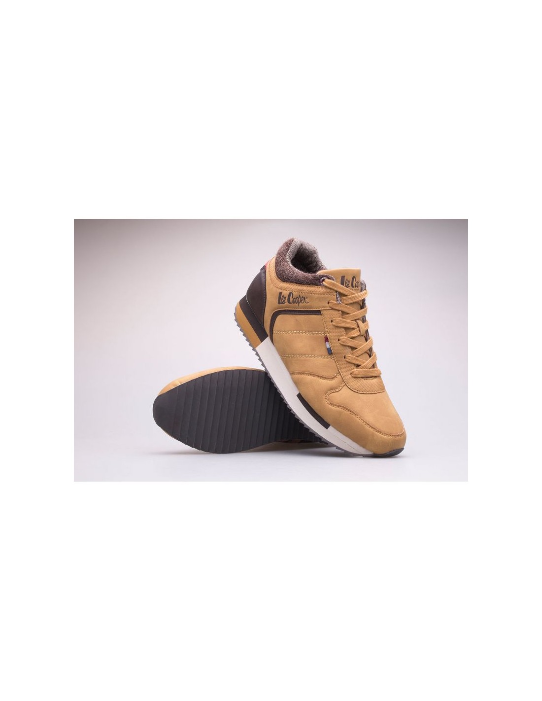 Ανδρικά αθλητικά παπούτσια Lee Cooper. Κατασκευασμένα από οικολογικό δέρμα. Παπούτσια με κορδόνια- φοριούνται και βγαίνουν εύκολα. Αυτό το μοντέλο χαρακτηρίζεται από μοναδικό σχεδιασμό, θα αποτελέσει ιδανικό στοιχείο της ανδρικής γκαρνταρόμπας. Τα παπούτσια Lee Cooper χαρακτηρίζονται από κλασική, σπορ αισθητική και σταθερή ποιότητα κατασκευής. Τα αθλητικά παπούτσια θα ταιριάξουν με τις καθημερινές ανδρικές αθλητικές στιλιστικές επιλογές. Εξαιρετικά βολικά και άνετα. Διαθέτουν ανάγλυφο λογότυπο Lee Cooper στο εξωτερικό τους. Χάρη στην προφίλ, αυλακωτή σόλα, κολλάνε καλά στο έδαφος, είναι άνετα και φροντίζουν τη σπονδυλική στήλη.