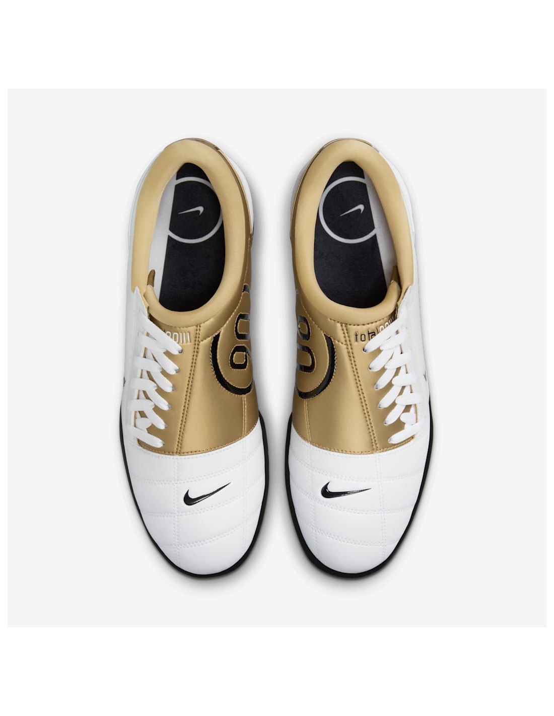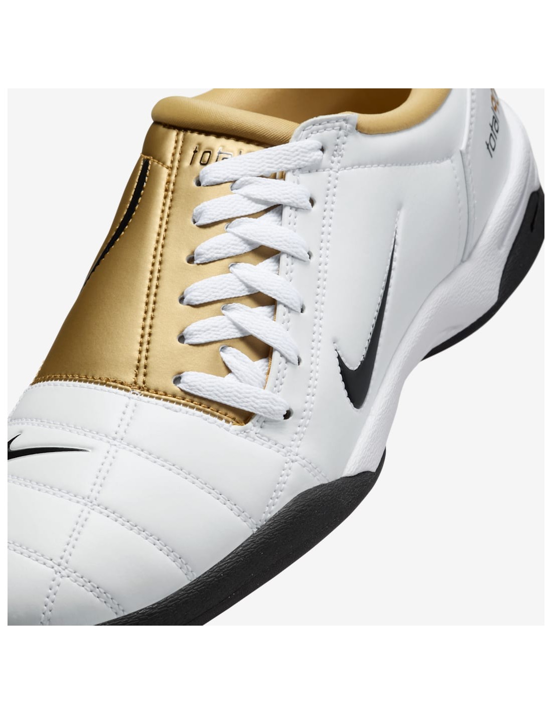 Το Nike Total 90 3 SP σε λευκό χρώμα με μεταλλικές χρυσές λεπτομέρειες είναι ένα εντυπωσιακό παπούτσι ποδοσφαίρου που προσφέρει άνεση και απόδοση στο γήπεδο.
