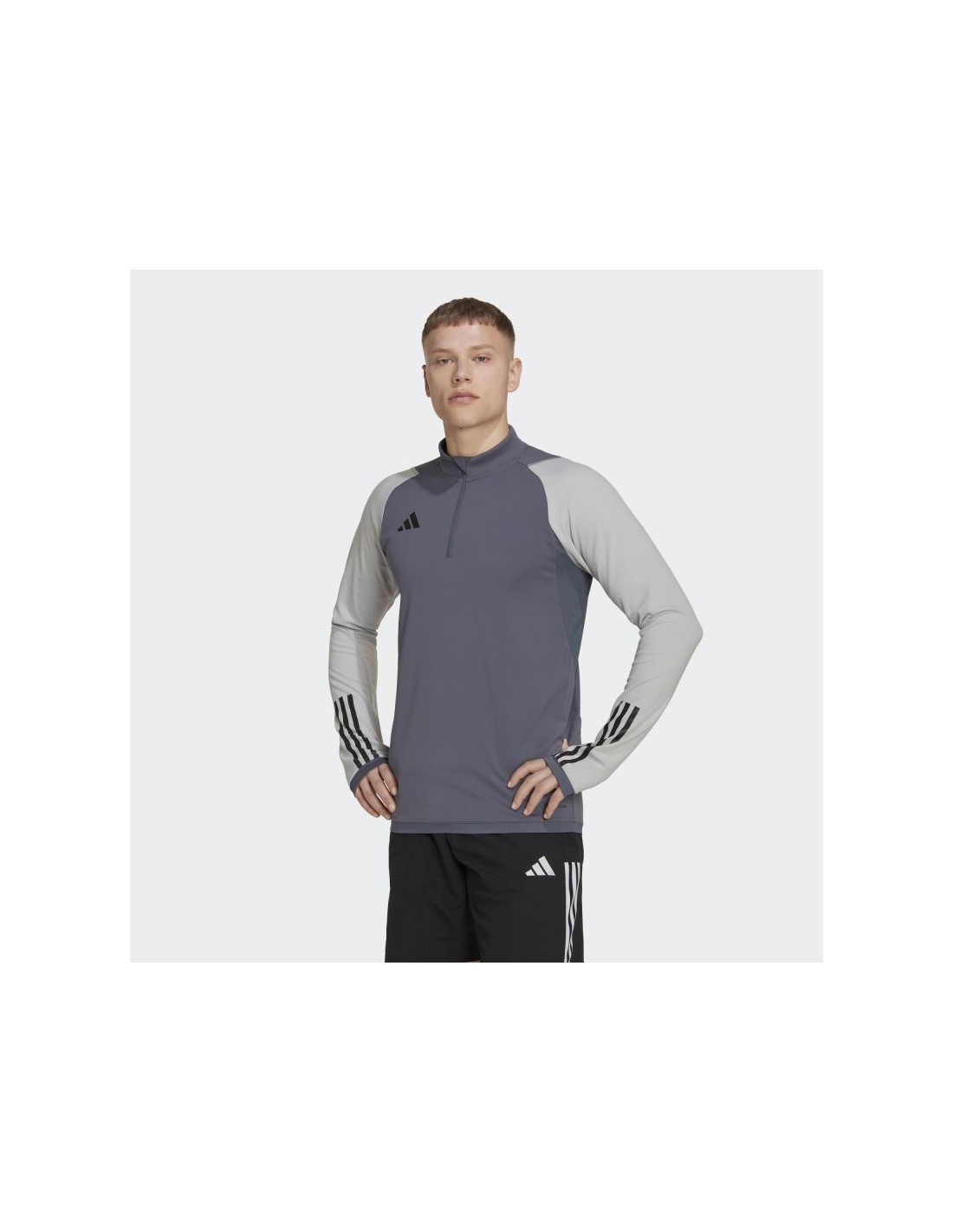 - Μαύρες ρίγες στο κάτω μέρος των μανικιών και ένα διακριτικό λογότυπο ξεχωρίζουν από το γκρι φόντο και τονίζουν το κλασικό ποδοσφαιρικό στυλ του φούτερ της adidas.