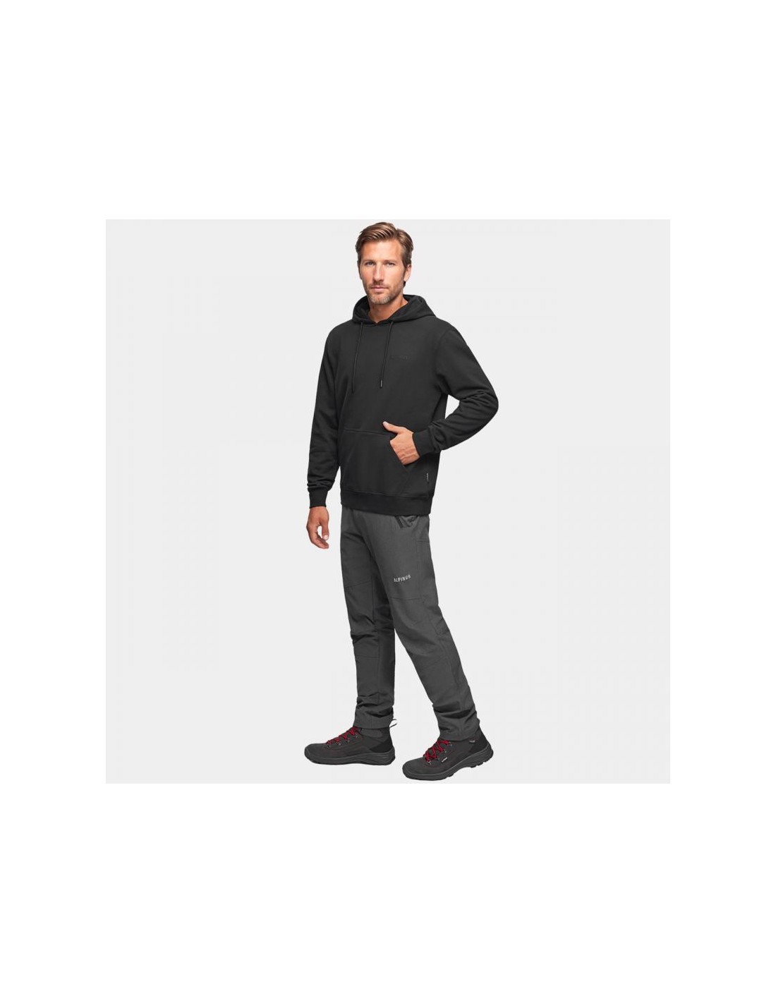 Alpinus Lugano ανδρικό φούτερ μαύρο BR18254 Το ανδρικό φούτερ Alpinus από τη σειρά Citi είναι ιδανικό για καθημερινή χρήση. Προσαρμοσμένο κόψιμο. Υλικό καλής ποιότητας και υψηλού βάρους. Ελαστικές μανσέτες στις μανσέτες και στους γοφούς. Με διακριτική υπογραφή με το λογότυπο της μάρκας. Το εσωτερικό φινίρισμα με τη μορφή ύφανσης "French terry" με θηλιές βελτιώνει την κυκλοφορία του αέρα και την απορρόφηση της υγρασίας. Ευρύχωρη κουκούλα με κορδόνι περίσφιξης για τη ρύθμιση της περιμέτρου. Μπροστινή τσέπη καγκουρό. Λόγω του μικρού μεγέθους, συνιστούμε να επιλέξετε ένα μεγαλύτερο μέγεθος. Υλικό: Κλασσικό ύφασμα: Βάρος υλικού: 320 γρ.