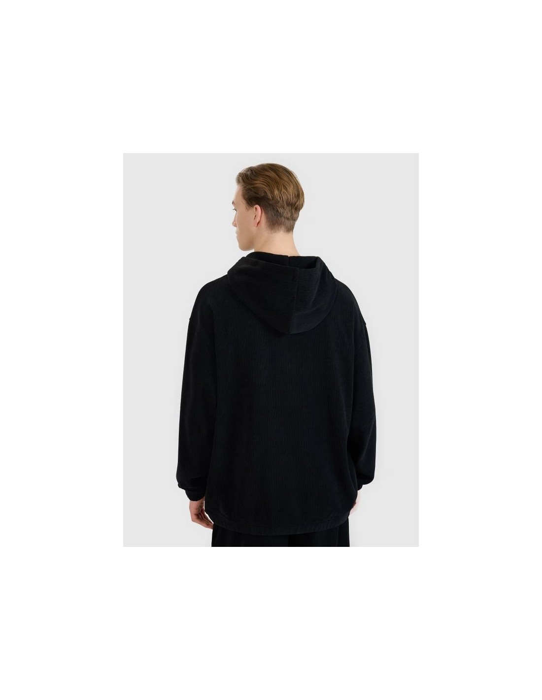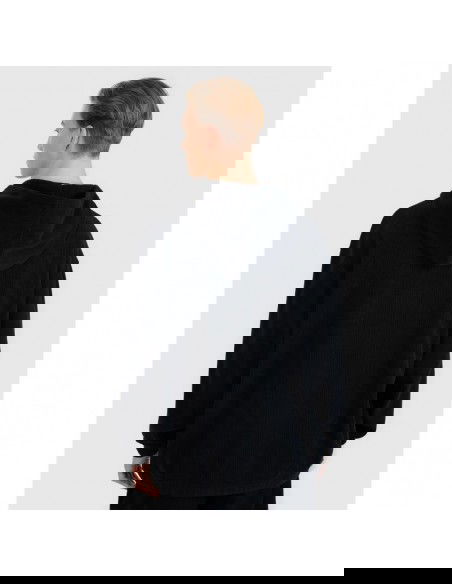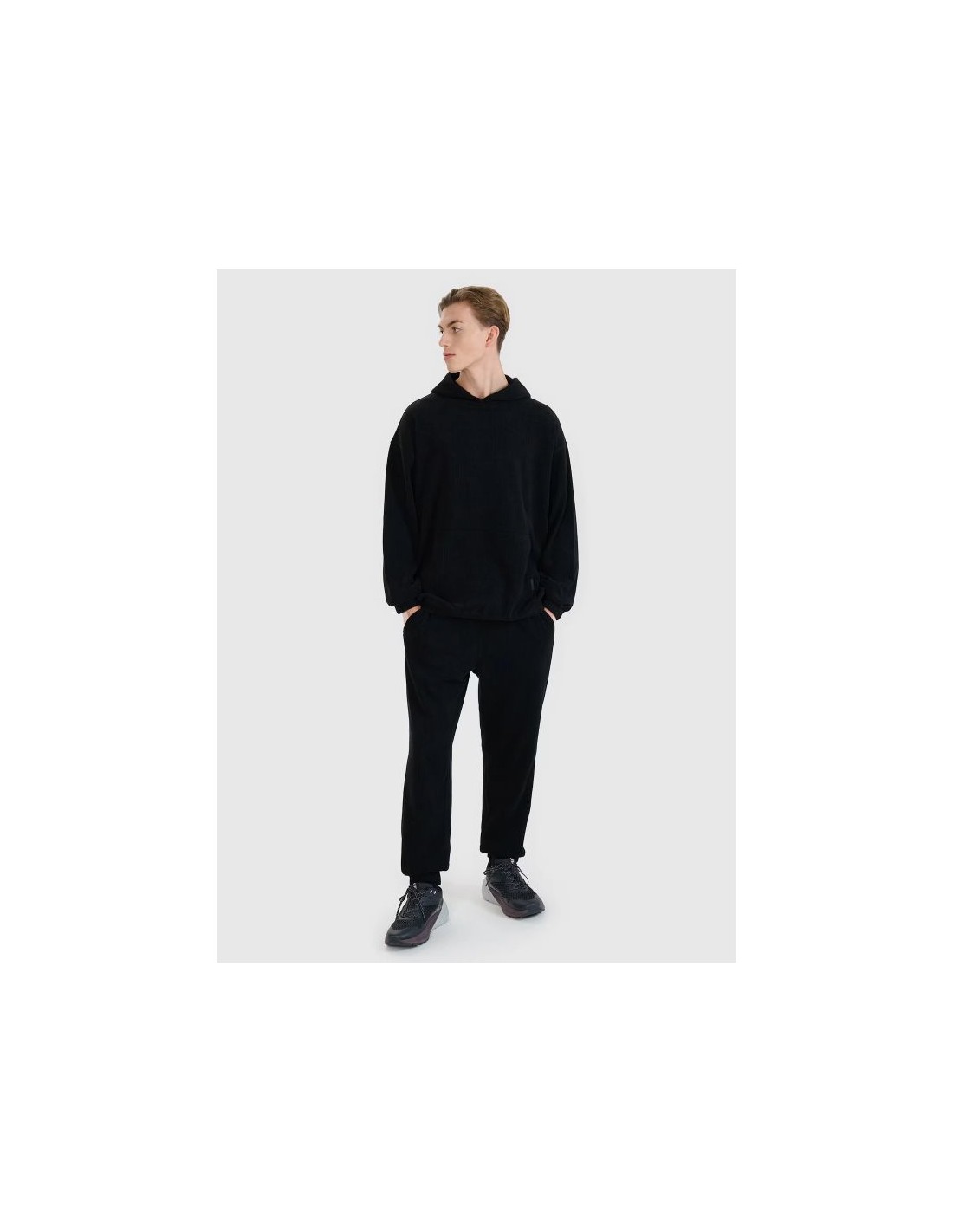 Men's hoodie 4F This men's hooded sweatshirt is a perfect choice for both casual and sporty outfits. Made of durable knit fabric with a corduroy-like texture, it stands out for its fashionable look and high functionality. Thanks to its oversized cut, the sweatshirt fits loosely on the body, ensuring complete freedom of movement. The high 385 gsm weight makes the material thicker, more durable, and resistant to deformation, allowing you to enjoy its shape for many seasons. The unlined construction makes it lighter and more comfortable for everyday wear. This model features an integrated hood , a practical kangaroo pocket at the front, and elastic cuffs and hem for a better fit and increased thermal comfort. It slips on over the head – a classic and versatile solution. The most important features of the sweatshirt: Weight: 385 gsm – thick, durable fabric. Cut: oversize – loose and casual style. Length: standard, hip-length. Material: synthetic – durable and easy to care for. Structure: knit fabric imitating corduroy. Size range: S–XXL. Hood: integrated at the neckline. Pocket: open kangaroo pocket at front. Finishing: elastic cuffs and hem with drawstring. Colors: uniform – easy to combine in styles.