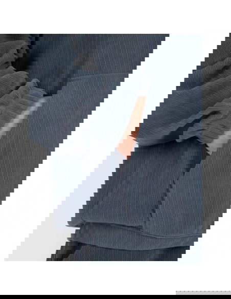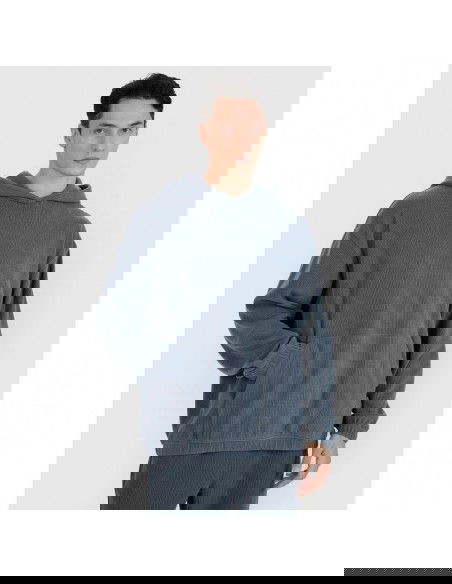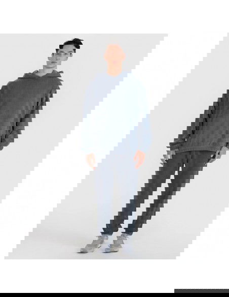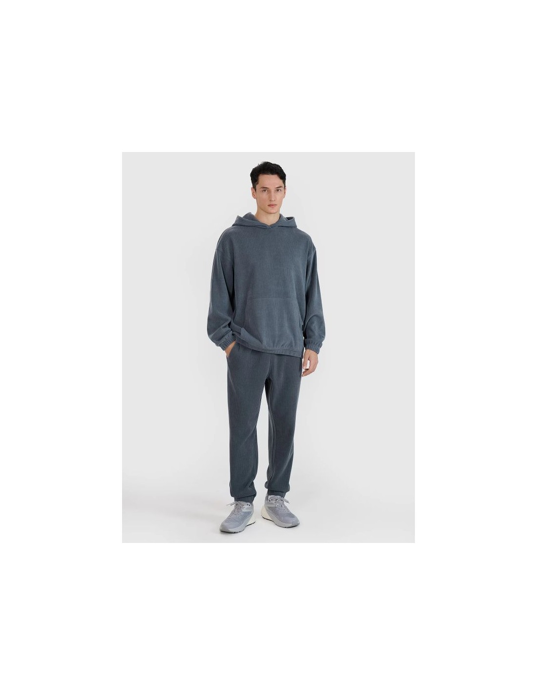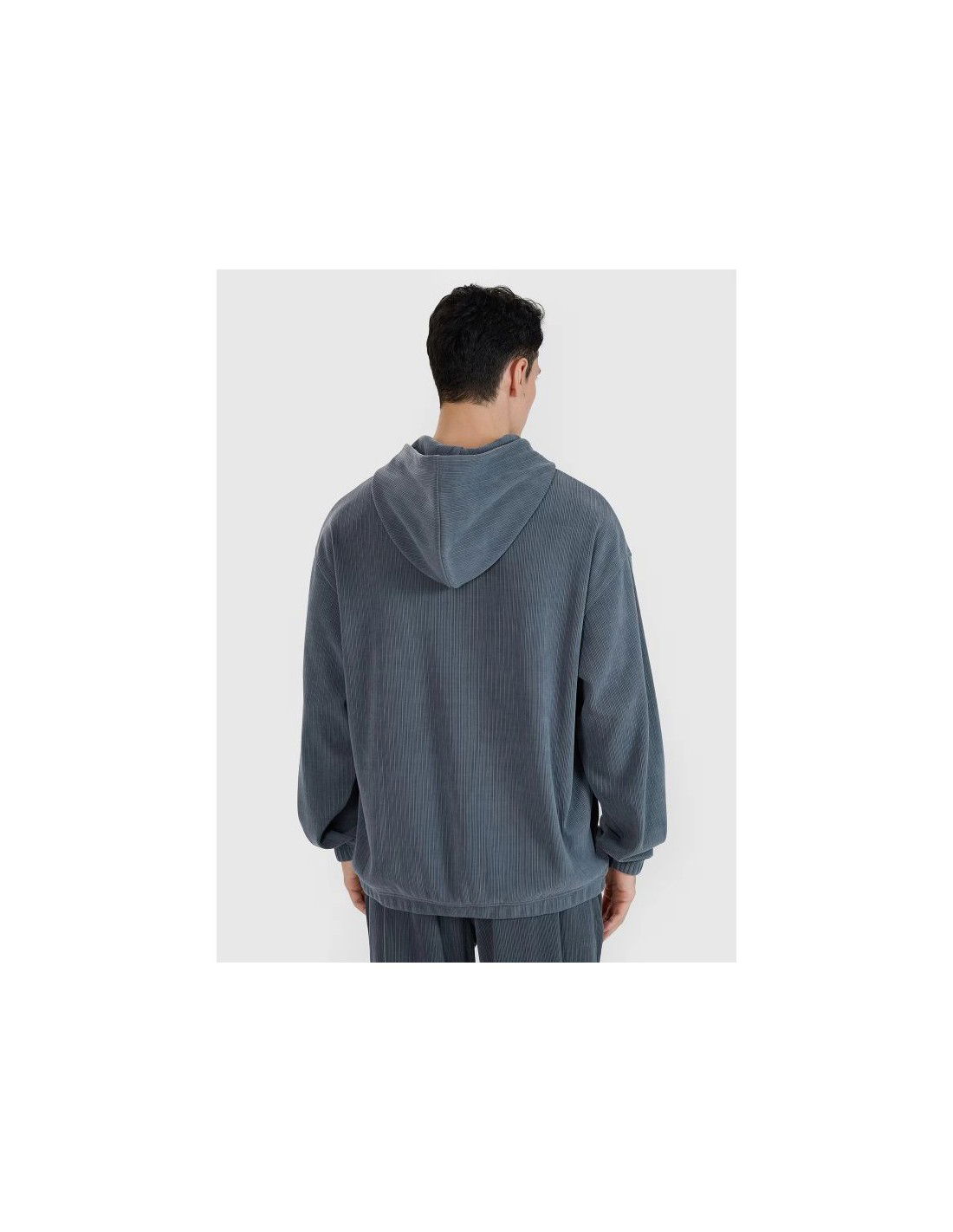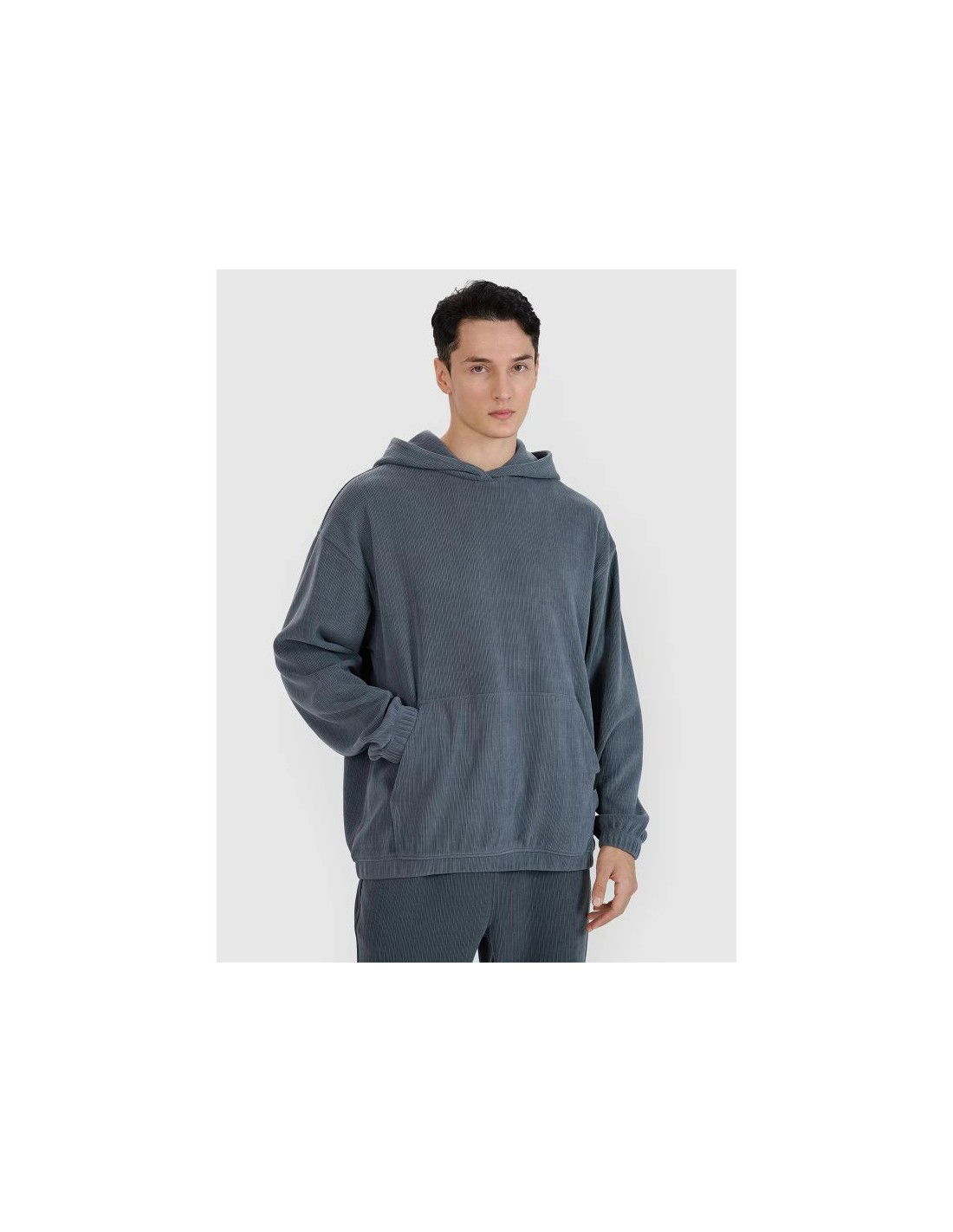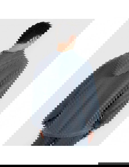Men's hoodie 4F This men's hooded sweatshirt is a perfect choice for both casual and sporty outfits. Made of durable knit fabric with a corduroy-like texture, it stands out for its fashionable look and high functionality. Thanks to its oversized cut, the sweatshirt fits loosely on the body, ensuring complete freedom of movement. The high 385 gsm weight makes the material thicker, more durable, and resistant to deformation, allowing you to enjoy its shape for many seasons. The unlined construction makes it lighter and more comfortable for everyday wear. This model features an integrated hood , a practical kangaroo pocket at the front, and elastic cuffs and hem for a better fit and increased thermal comfort. It slips on over the head – a classic and versatile solution. The most important features of the sweatshirt: Weight: 385 gsm – thick, durable fabric. Cut: oversize – loose and casual style. Length: standard, hip-length. Material: synthetic – durable and easy to care for. Structure: knit fabric imitating corduroy. Size range: S–XXL. Hood: integrated at the neckline. Pocket: open kangaroo pocket at front. Finishing: elastic cuffs and hem with drawstring. Colors: uniform – easy to combine in styles.
