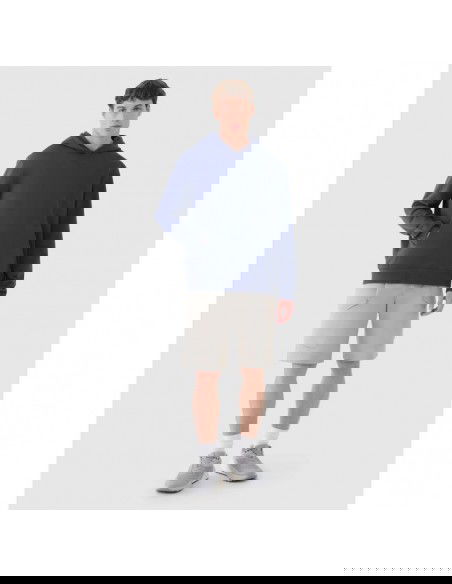 Men's hoodie 4F This men's hooded sweatshirt combines sporty style with everyday comfort. Its heavyweight and soft fabric ensure comfort, durability, and optimal protection against the cold. This model features a regular fit that comfortably conforms to the body without restricting movement. The interior is made of French terry fabric, making it breathable and comfortable for everyday wear. The integrated hood , elastic cuffs, and a practical kangaroo pocket enhance functionality and comfort. A "Wind Flow" print is visible on the back, giving the piece a sporty character. Functional solutions Weight 370 gsm – thick, durable and warm fabric. Regular fit – fitted but relaxed style. French terry knit fabric – smooth on the outside, looped on the inside. Integrated hood – additional protection against cold and wind. Kangaroo pocket – a practical place for small items or to warm your hands. Ribbed cuffs and hem for better fit and warmth retention. “Wind Flow” print on the back – a stylish detail. Slips on over the head – classic and comfortable design. Key features: Weight: 370 gsm Size range: S–3XL Cut: regular , standard length to the hips Material: 80% cotton, 20% polyester Colors: solid Pockets: front – kangaroo Neckline: with integrated hood Sleeves: long, finished with cuffs Bottom: elastic cuff Print: "Wind Flow" on the back 4F Logo: Guarantee of quality and sporty character in everyday use.