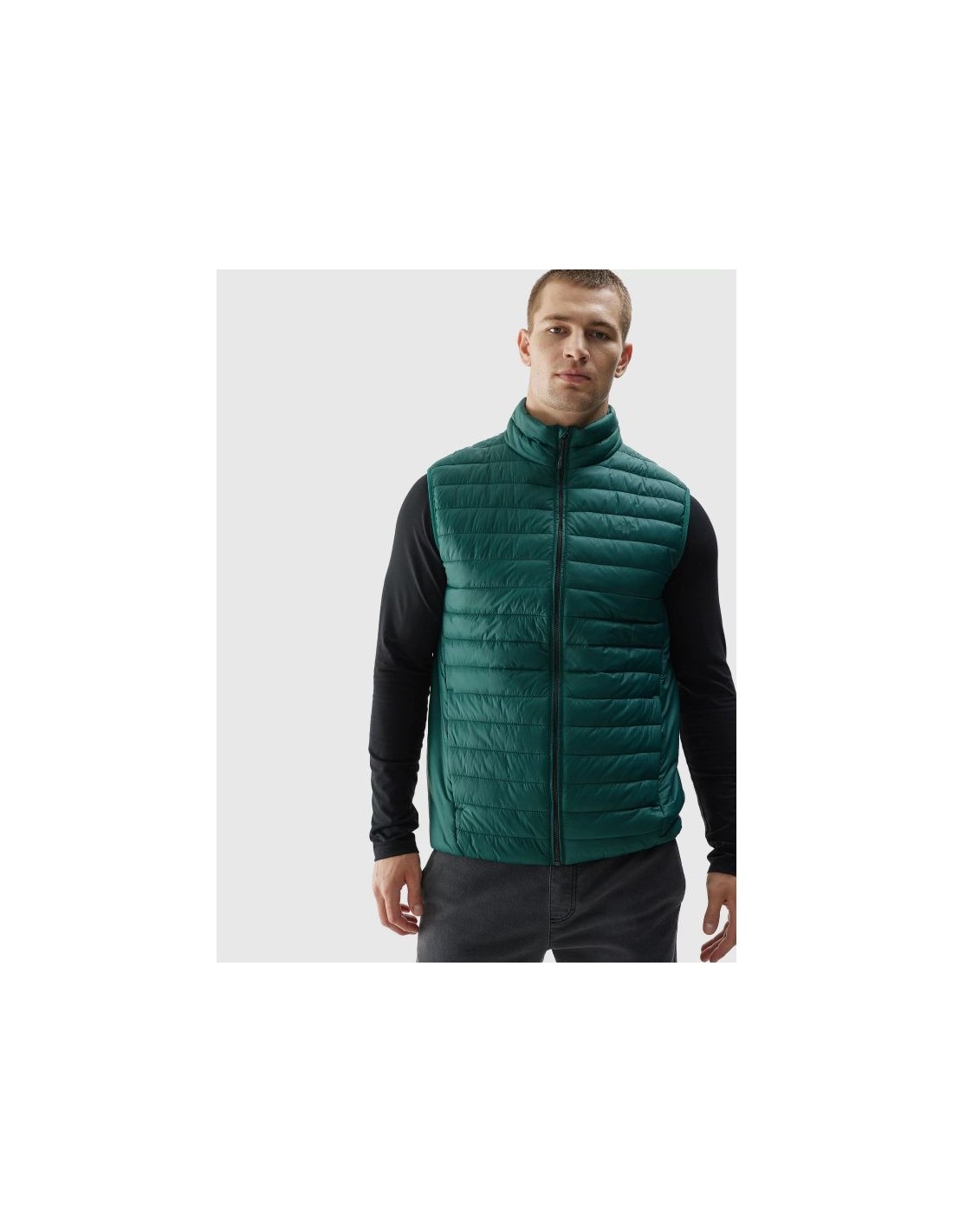 Ανδρικό γιλέκο 4F M062 πράσινο 4FAW23TVESM062 41S Το ανδρικό αμάνικο γιλέκο 4F είναι ιδανικό για καθημερινή χρήση. Χωρίς φόδρα. Πλευρικές τσέπες με φερμουάρ. Άνετος γιακάς για προστασία από τον αέρα. Εσωτερική ελαστική ζώνη στο κάτω μέρος. Οι οπές των βραχιόνων τελειώνουν με ελαστικό τελείωμα. Ο υδρόφοβος εμποτισμός του υλικού περιορίζει την απορρόφηση υγρασίας από το εξωτερικό. Κεντρικό φερμουάρ με εσωτερική αντιανεμική πτυχή που καταλήγει σε πτερύγιο προστασίας του πηγουνιού. Η συνθετική πουπουλένια γέμιση εξασφαλίζει βέλτιστη θερμική άνεση κατά τη χρήση. Τεχνικά στοιχεία: - Κύριο υλικό: Κλασσικό υλικό: 100% πολυεστέρας - Κύριο υλικό: 100% πρόσθετο - Γέμισμα: 100% πολυεστέρας