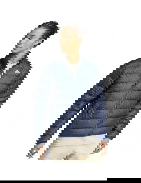 Men's adidas jacket creates insulation from the cold thanks to natural filling, which is enclosed in horizontal panels. Water-repellent finish without perfluorinated chemicals (PFC).