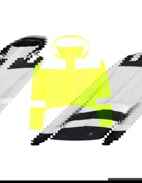 - high visibility clothing, waterproof, windproof and breathable material, water repellent,