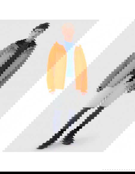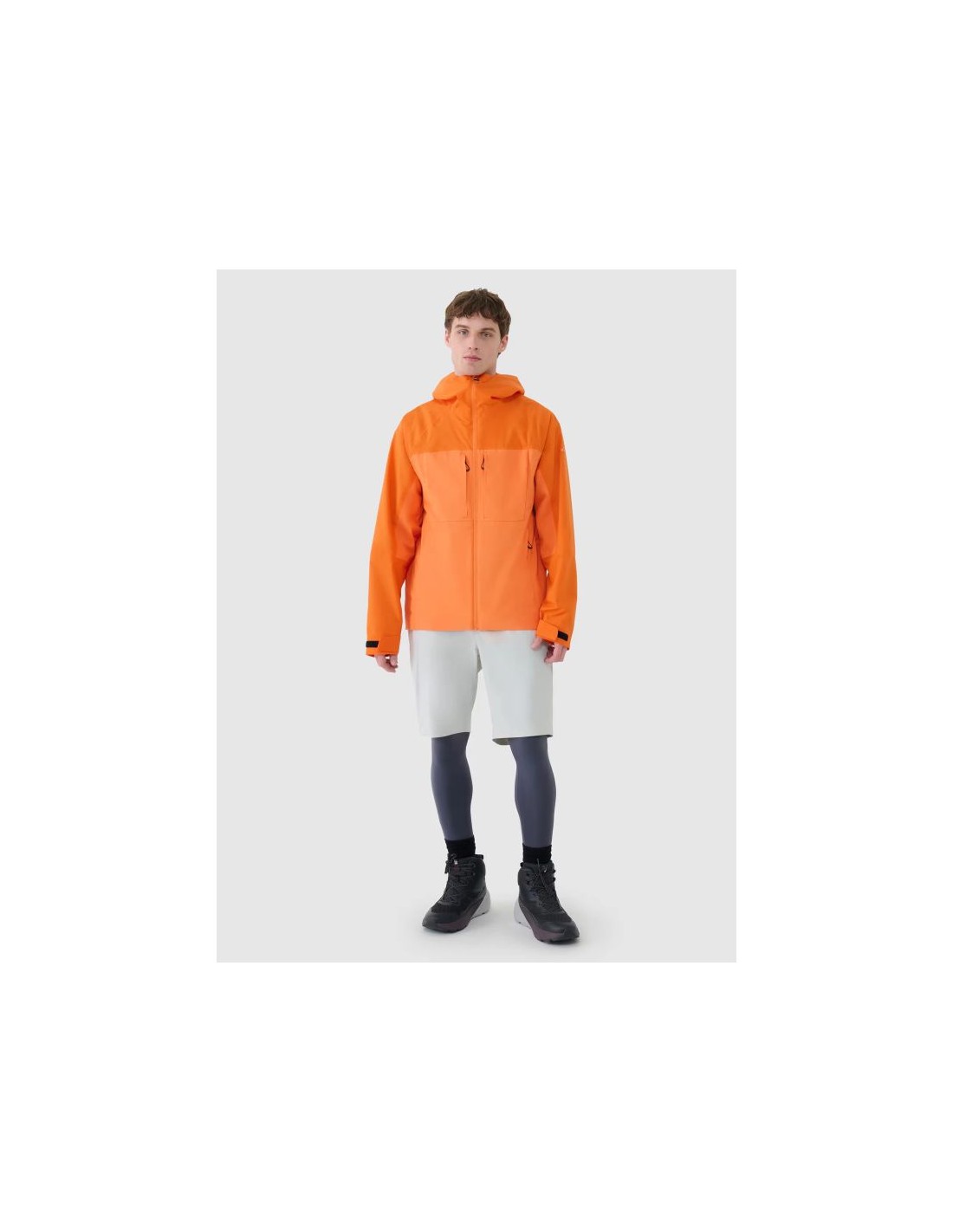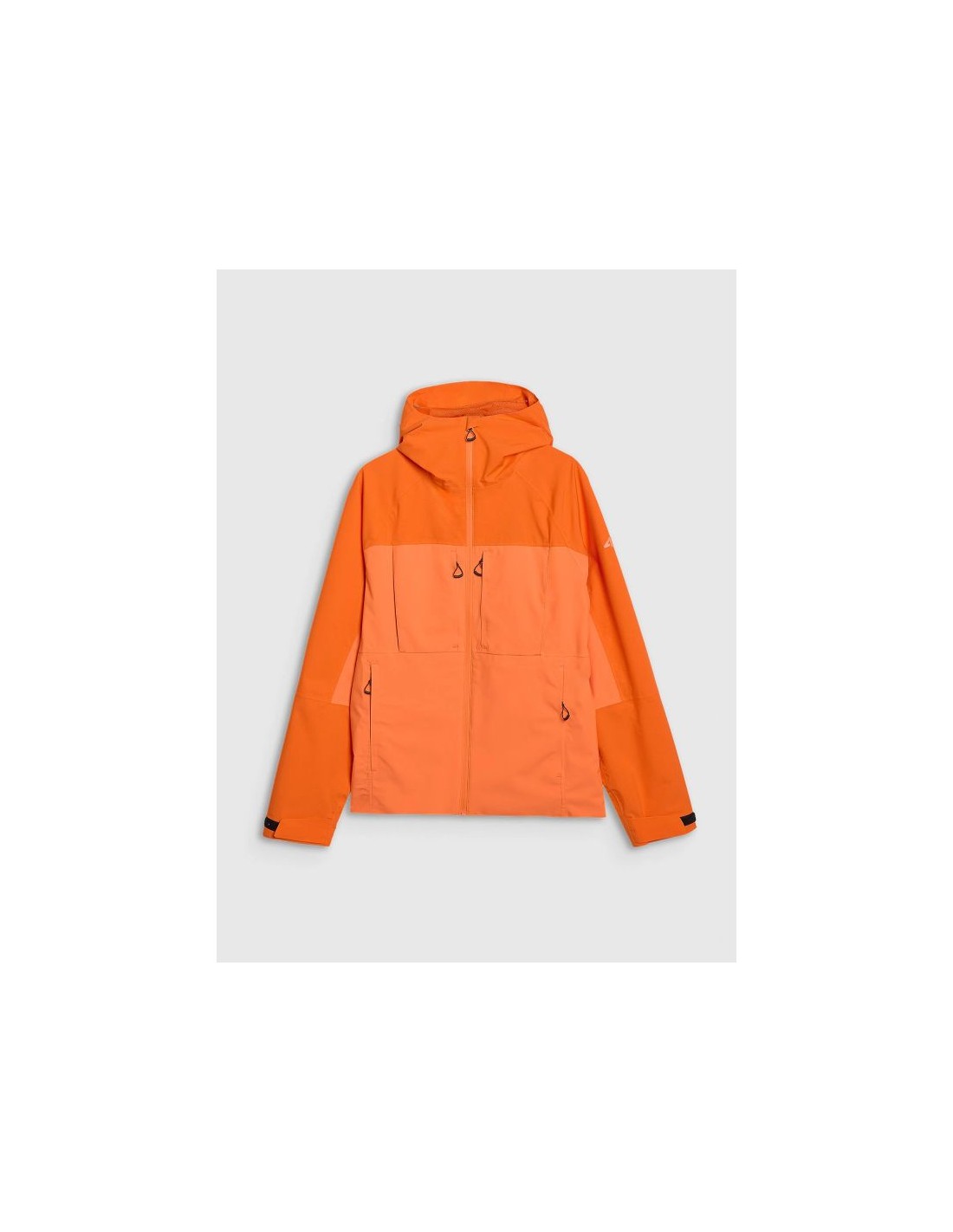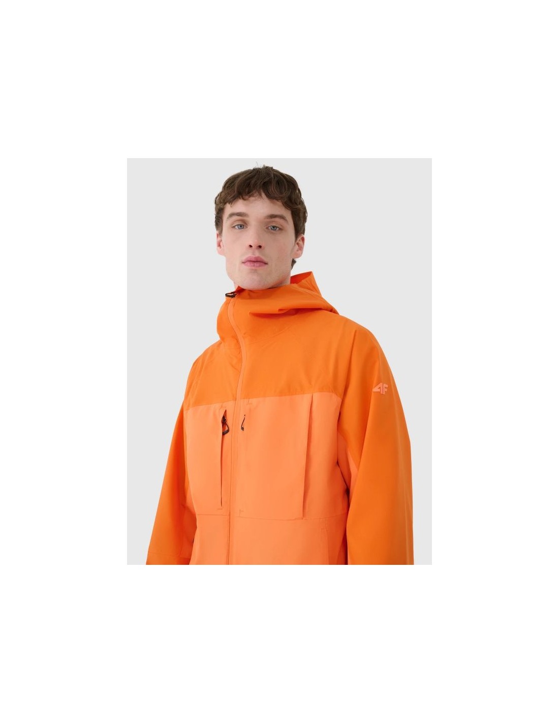 Men's 4F trekking jacket with NeoDry 10000 membrane Reliable protection in all conditions – the 4F trekking jacket is the perfect choice for active men seeking functional solutions for mountain trails and everyday adventures. Thanks to the NeoDry 10,000/8,000 membrane, the jacket effectively protects against moderate rainfall and allows the skin to breathe even during intense exertion. Key features: NeoDry 10000 membrane – waterproof up to 10,000 mm H?O, breathability 8000 g/m²/24h Hydrophobic coating and taped seams – effective protection against water Underarm ventilation – thermal comfort during activity Integrated, adjustable hood with visor – protection against rain and wind High collar and adjustable cuffs – increased protection against the cold Numerous pockets – 5 practical pockets with zipper and Velcro Lightweight, regular construction – comfort and freedom of movement The jacket can be worn alone as a hardshell layer or with additional thermal clothing. It's perfect for both mountain trekking and city walks in harsher weather conditions.