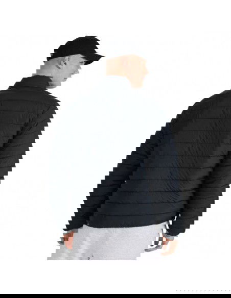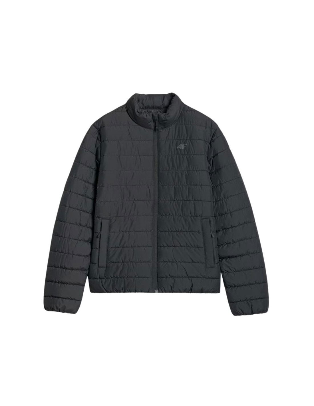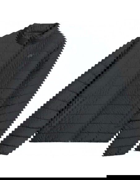 The 4F M597 Men's Down Jacket, Deep Black 4FWAW25TDJAM597 20S, is a lightweight men's jacket perfect for warmer or cloudy days during the transitional period. Its standard cut features horizontal quilting and a low stand-up collar. The outer material's hydrophobic impregnation allows moisture to bead on the fabric or knit surface and then roll off freely. Synthetic down filling is more durable and easier to care for than natural down. Even when exposed to moisture, it retains its insulating properties for longer and dries much faster. Technical data: Main material: 100% polyester Lining: 100% polyester Filling made of 100% recycled synthetic down, provides adequate insulation properties even in humid conditions Regular fit - comfortable fit to the body without restricting movement Standard length to the hips - universal style for everyday use Classic horizontal quilting - even distribution of fill and a stylish look Lightweight construction - comfort of wearing without unnecessary weight Hydrophobic outer coating - limits moisture absorption Rip stop fabric - increased tear resistance and durability Recycled synthetic fill - effective insulation even in humid conditions Stand-up collar - additional neck protection against cold Elasticated cuffs and hem - better fit and wind protection 2 side zip pockets - safe storage of small items Inner zip pocket - additional space for valuables Main zipper with a flap windproof - increased protection against heat loss