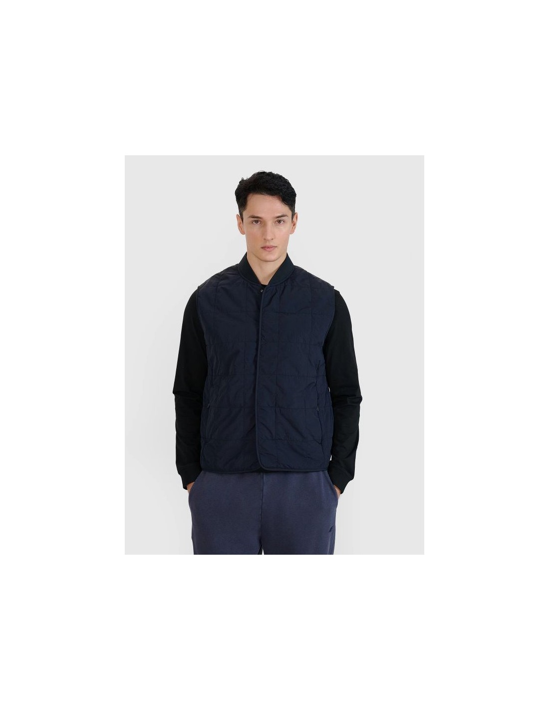 Men's sleeveless vest with a stand-up collar – comfort and functionality for everyday use A men's vest is a versatile wardrobe staple that works well with both casual and sporty outfits. Ideal for warmer days, it provides thermal comfort without restricting movement. Made of durable, easy-care synthetic material, the vest has a regular cut that comfortably fits the body and a standard length that reaches to the hips. Practical solutions: Hydrophobic impregnation protects the outer layer of the fabric from absorbing water. Moisture condenses on the surface and rolls off freely, keeping the material dry. The low stand-up collar covers the neck, providing additional protection against cold and wind. The vest has two side pockets with zippers and one inside chest pocket with Velcro closure. The main snap closure makes it easy to put on and take off quickly. Men's vest – detailed features: Regular fit that adapts to the silhouette Standard length reaching to the hip line Polyester with smooth lining Hydrophobic coating that limits moisture absorption Stand-up collar protecting the neck 2 side pockets with zippers Internal chest pocket with Velcro closure Main fastening with snaps Synthetic material, durable and easy to care for Hydrophobic impregnation – a special coating on the material that causes water to bead up and run down the fabric without penetrating inside, ensuring dryness and comfort of use.