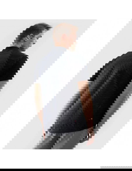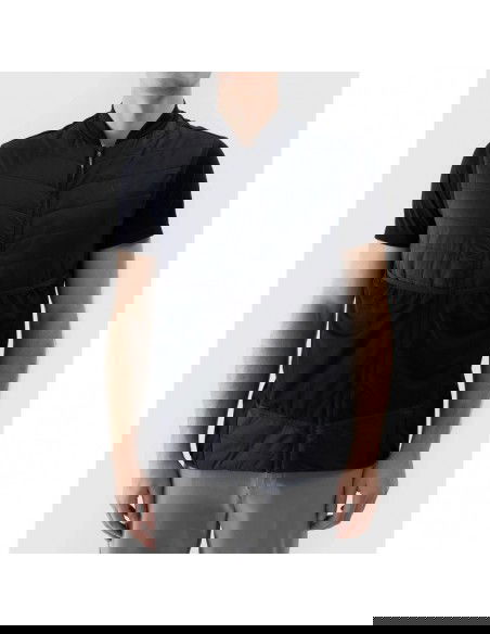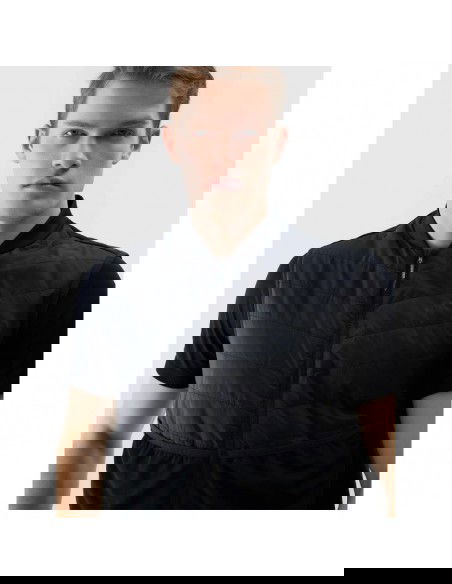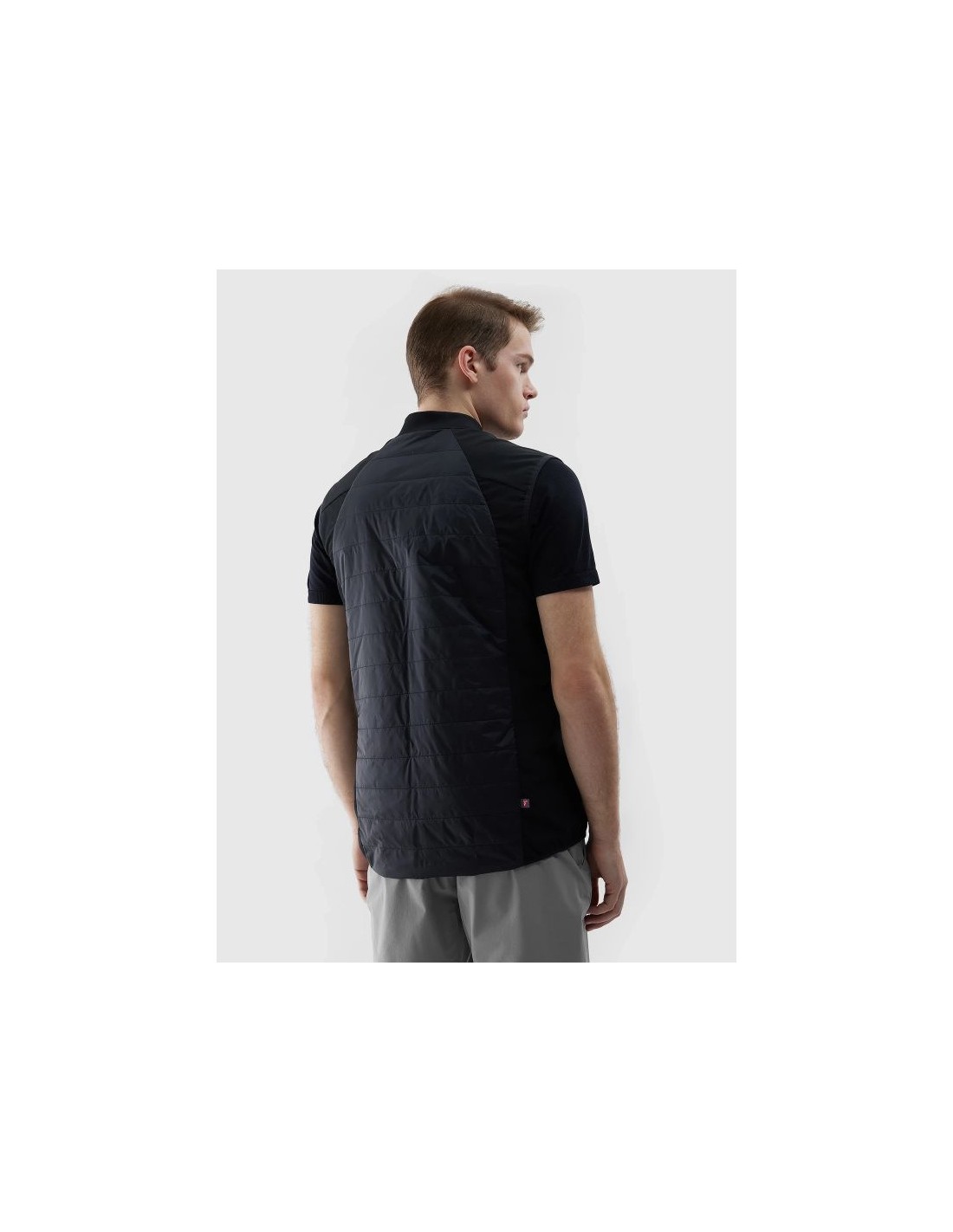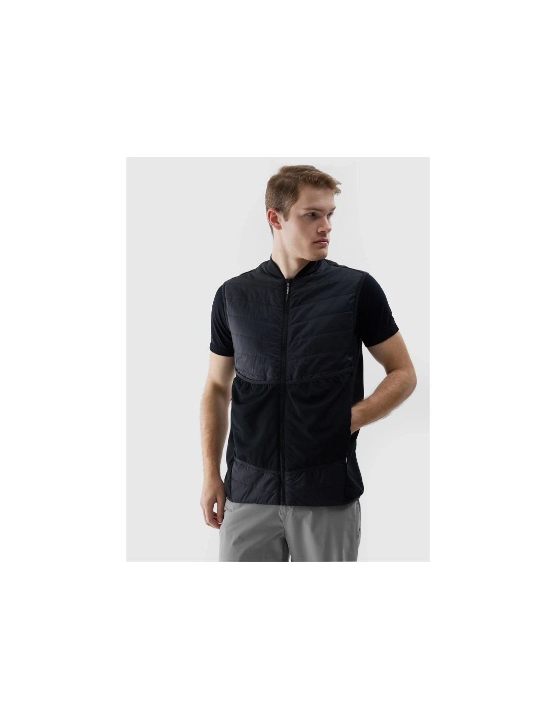 This men's running vest with a stand-up collar features a lightweight construction that provides support during warm-weather training/running sessions. Made from breathable fabric treated to wick away moisture and prevent overheating, it not only ensures comfort but also provides protection during sudden weather changes. It has a slim fit that hugs the body and is cut at a regular length through the hips. Men's Primaloft Black Eco Filled Running Vest Practical solutions while running: hydrophobic impregnation coating and Ultralightdy technology cut: slim, which adapts to the silhouette size range: S-3XL standard hip-length cut polyester, smooth lining the hydrophobic coating of the outer material limits the absorption of moisture ultra-light construction with Ultralight technology ensures comfort without additional weight a hybrid construction combining impregnated panels with a flexible, quick-drying fabric stand-up collar armholes with elastic trim 2 side pockets with zipper closure 2 open pockets on the front one-way main zipper with internal wind flap bottom with elastic hem, not adjustable can be packed into a pocket quilted panels with PrimaLoft Black Insulation Eco filling provide effective thermal insulation, combined with the idea of sustainable development (made of 100% recycled polyester) PARAMETERS: Filling: 100% polyester (Primaloft Black Eco) The low weight of the filling makes the jacket light and packable. Additional material: Polyester 81%, Elastane 19% Additional material 2: Polyester 88%, Elastane 12% Main material: Polyamide 100% Main material 2: Polyester 92%, Elastane 8% Lining: Polyamide 100% Filling: Polyester 100%