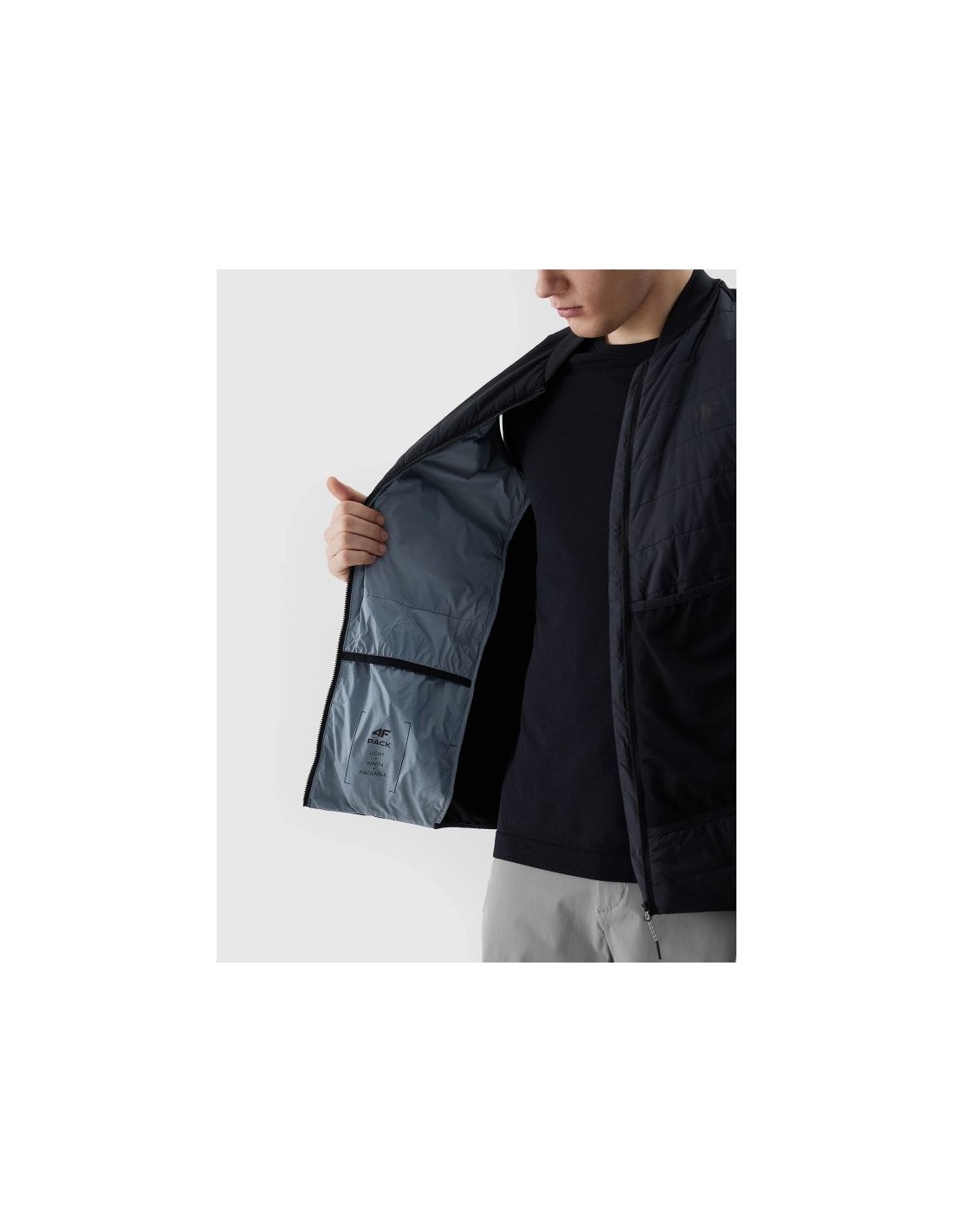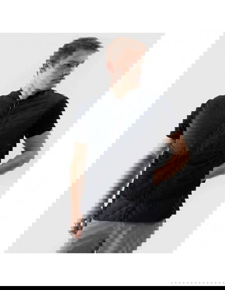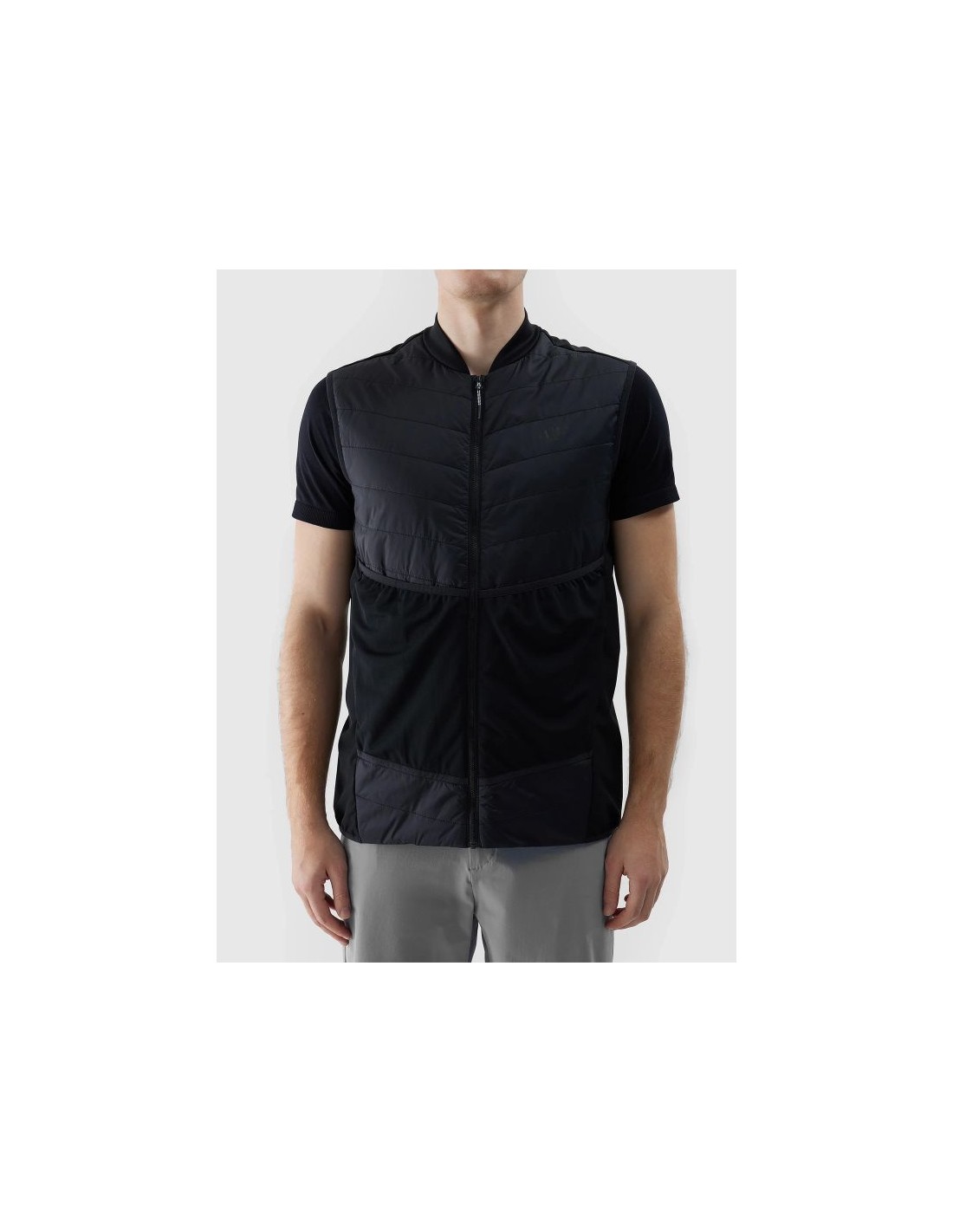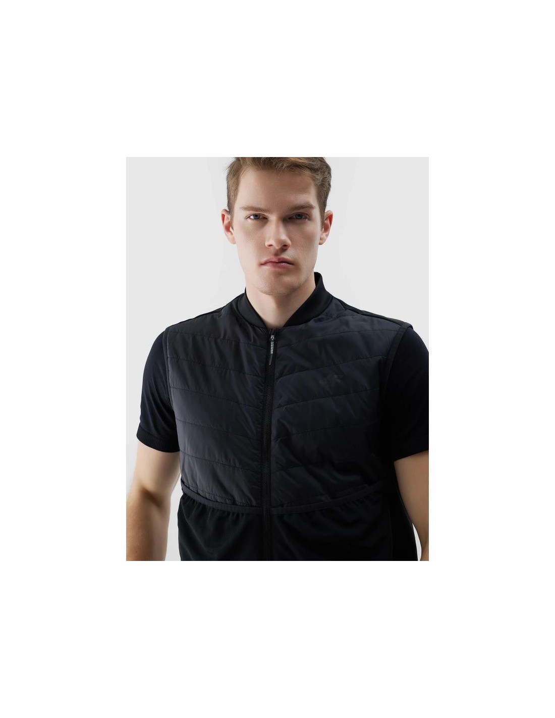 This men's running vest with a stand-up collar features a lightweight construction that provides support during warm-weather training/running sessions. Made from breathable fabric treated to wick away moisture and prevent overheating, it not only ensures comfort but also provides protection during sudden weather changes. It has a slim fit that hugs the body and is cut at a regular length through the hips. Men's Primaloft Black Eco Filled Running Vest Practical solutions while running: hydrophobic impregnation coating and Ultralightdy technology cut: slim, which adapts to the silhouette size range: S-3XL standard hip-length cut polyester, smooth lining the hydrophobic coating of the outer material limits the absorption of moisture ultra-light construction with Ultralight technology ensures comfort without additional weight a hybrid construction combining impregnated panels with a flexible, quick-drying fabric stand-up collar armholes with elastic trim 2 side pockets with zipper closure 2 open pockets on the front one-way main zipper with internal wind flap bottom with elastic hem, not adjustable can be packed into a pocket quilted panels with PrimaLoft Black Insulation Eco filling provide effective thermal insulation, combined with the idea of sustainable development (made of 100% recycled polyester) PARAMETERS: Filling: 100% polyester (Primaloft Black Eco) The low weight of the filling makes the jacket light and packable. Additional material: Polyester 81%, Elastane 19% Additional material 2: Polyester 88%, Elastane 12% Main material: Polyamide 100% Main material 2: Polyester 92%, Elastane 8% Lining: Polyamide 100% Filling: Polyester 100%