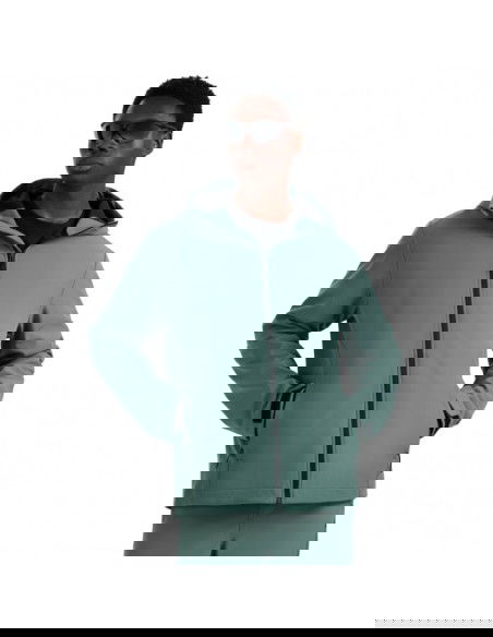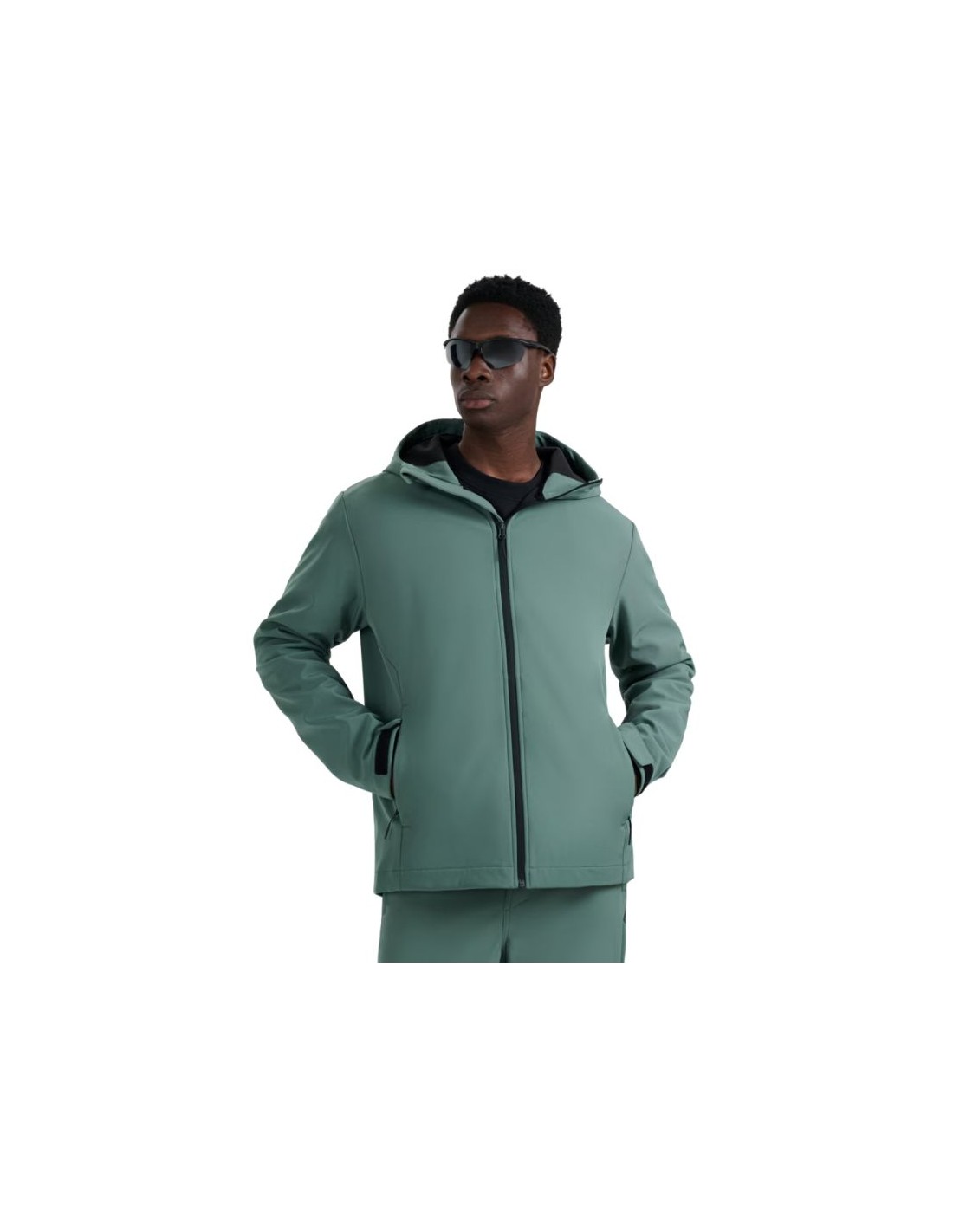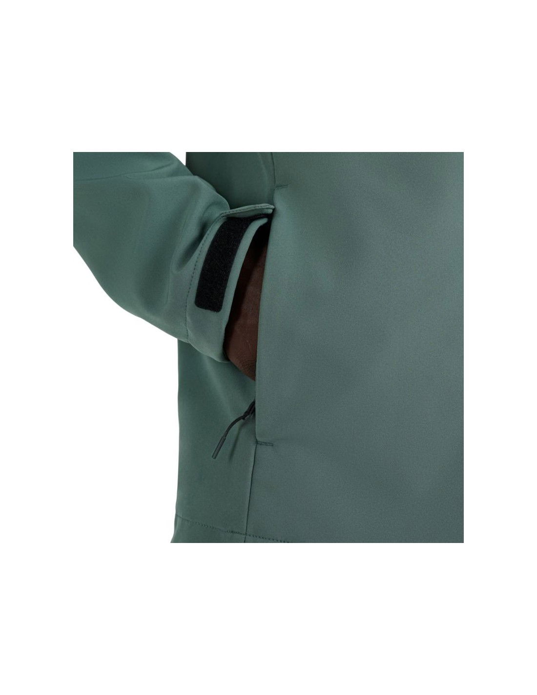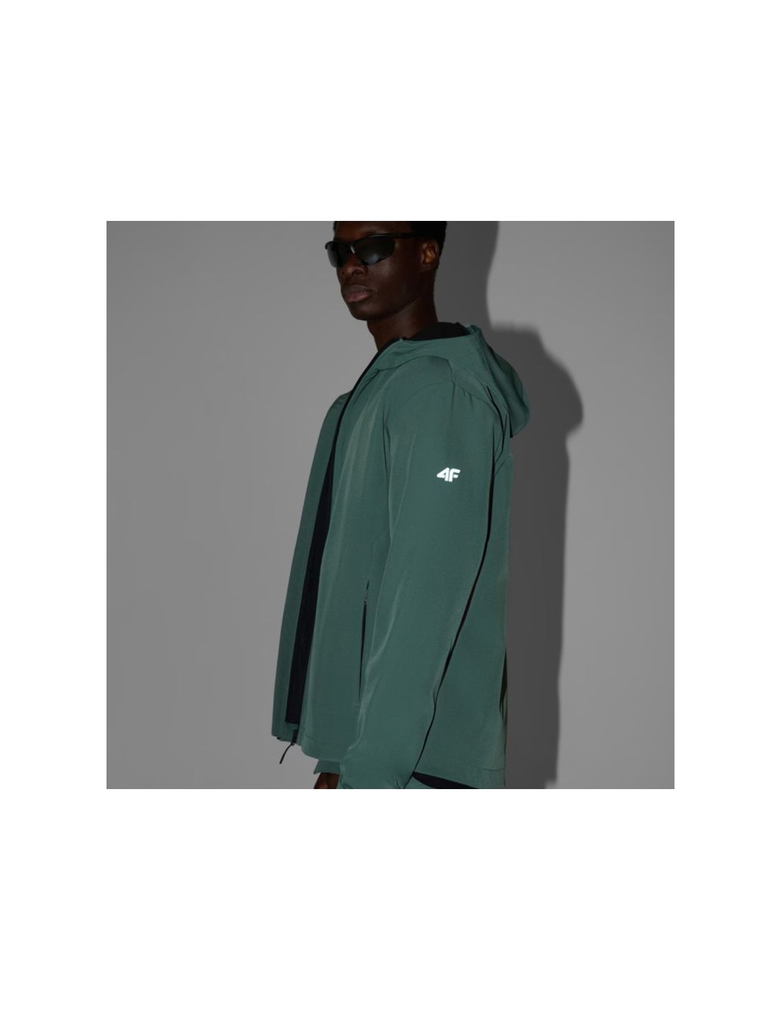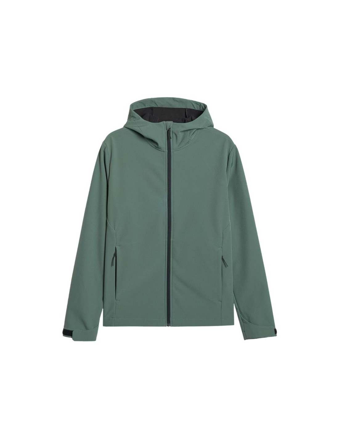 Men's jacket 4F M362 dark green 4FWAW25TSOFM362 40S The 4F men's softshell jacket will allow you to face changing weather conditions during low-intensity activities. The NeoDry membrane with a parameter of 5000/3000 will provide resistance to light rainfall, while at the same time allowing the free wicking of moisture to the outside. Technical data: Main material: 96% polyester, 4% elastane Lining: 100% polyester · Membrane waterproofness level: 5000 mm H2O · Membrane breathability level: 3000 g/m2/24h NeoDry 5000/3000 membrane - protects against light rain and snow, ensuring breathability · Softshell material - effectively protects against wind thanks to the windstopper function · Hydrophobic outer coating - limits moisture absorption and improves protection · Microfleece lining - provides thermal comfort on warmer days Regular fit - comfortably fits the body Integrated hood - for better wind protection · High collar - protects the neck and prevents cold 2 zippered pockets - a safe place for small items and to warm your hands Velcro cuffs and non-adjustable hem - simple finish for lightweight, everyday comfort