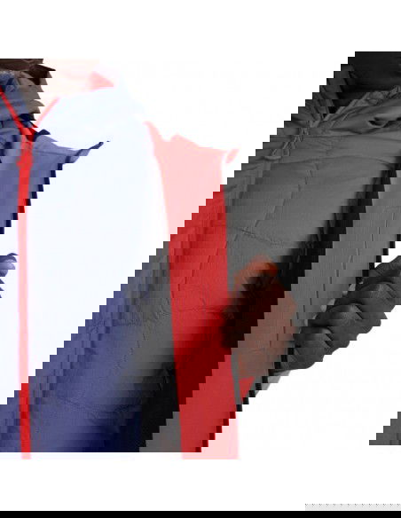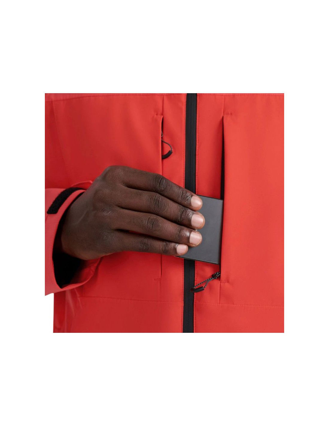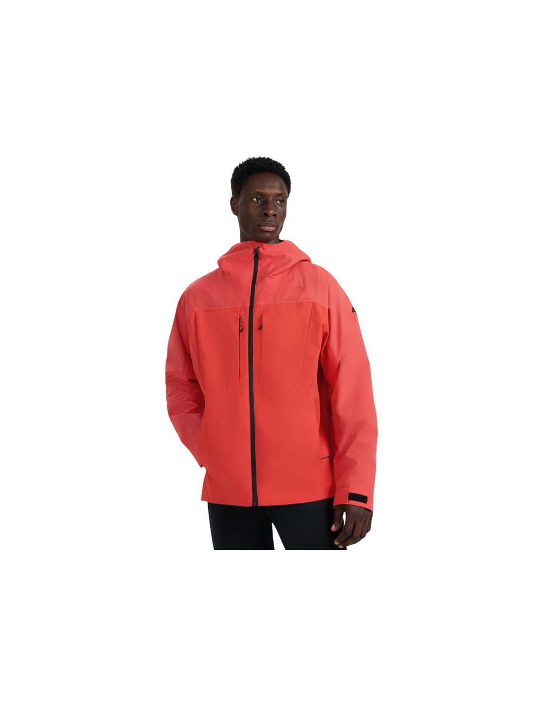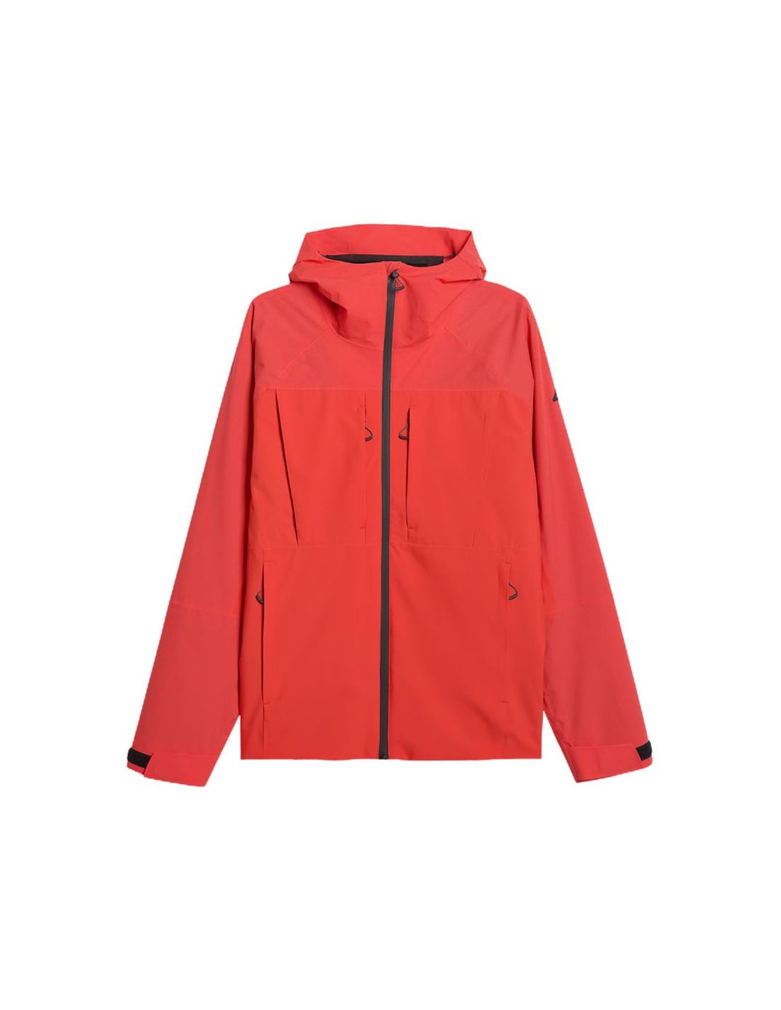 Men's trekking jacket 4F M1010 orange 4FWAW25TTJAM1010 70S The 4F men's trekking jacket is a proven choice for expeditions in variable conditions. Technical data: Main material: 100% polyester Lining: 100% polyester · Membrane waterproofness level: 10,000 mm H2O Membrane breathability level: 8000 g/m2/24h NeoDry 10000/8000 membrane - provides protection against moderate rain and breathability Waterproof seams - all seams are taped, which increases the jacket's watertightness · Hydrophobic coating - limits moisture absorption and supports the operation of the membrane Breathable mesh lining - improves thermal comfort and supports air circulation Regular fit - ensures comfort and freedom of movement while hiking · Hood with visor and adjustment - adjusts to the head and protects against wind and rain · High collar - protects the neck and prevents cooling during activity · Adjustable cuffs - Velcro fasteners allow for a personalized fit · Underarm ventilation - a zipper under the pleat allows for quick regulation of airflow 2 side zip pockets - allow you to safely store small items while on the move 2 zipped chest pockets - easily accessible space for essential trekking accessories · Inner Velcro pocket - you can store documents or other important items there · Main zipper with a pleat - internal wind shield improves thermal comfort