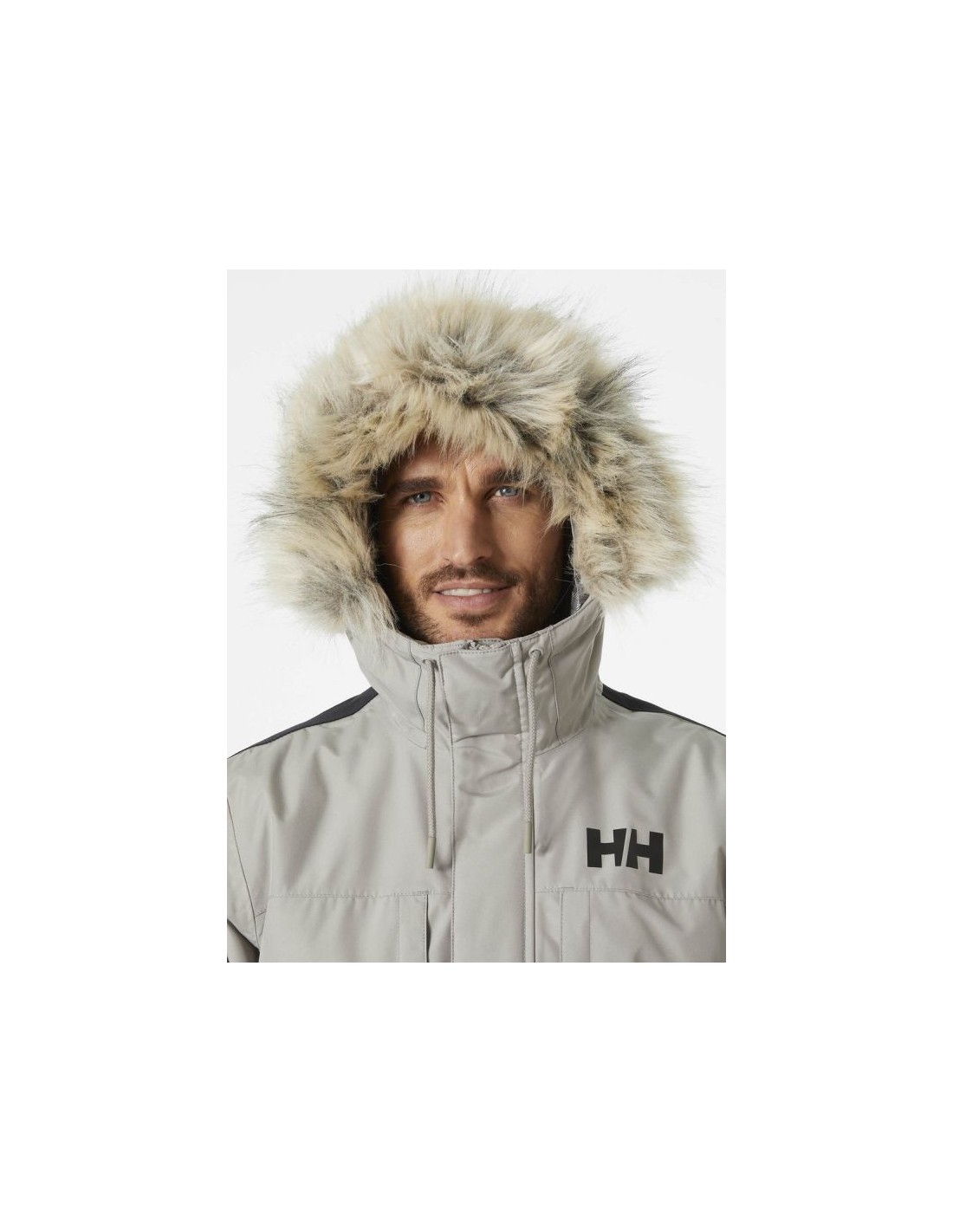 Properties: The men's Coastal 3.0 Parka is a highly versatile, waterproof, insulated parka with a double layer construction, adjustable snap cuffs, an adjustable hood, HH logo prints and a removable faux fur trim. The parka is equipped with 133g PrimaLoft® Black Eco insulation, offering state-of-the-art insulation technology, made from recycled materials and with an excellent thermal protection-to-weight ratio. HELLY TECH® PROTECTION YKK VISLON® Buttoned cuffs with adjustable fit Adjustable hood HH® logo print Detachable faux fur trim Chest pocket with YKK zipper Two-layer construction Brushed-lined hand pockets Sealed seams INSULATION – Primaloft® Black Eco 133 g PFC-free Outer material: 100% polyester Lining 2: 100% polyester Faux fur: 100% modacrylic Insulation: 100% polyester (recycled)