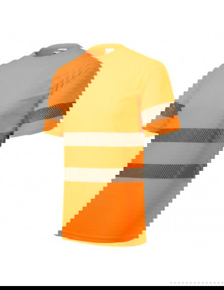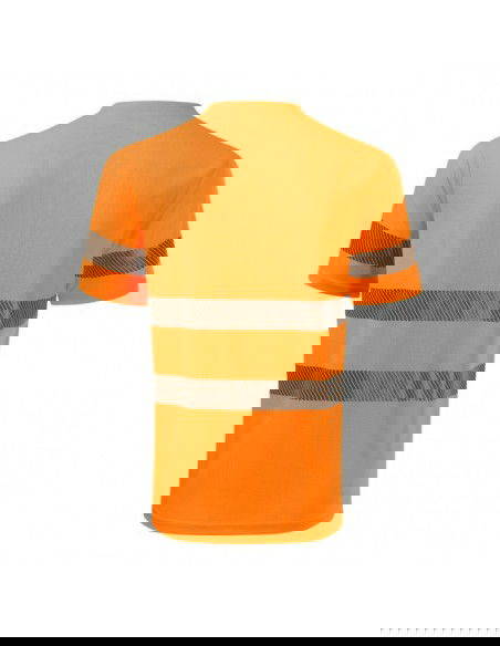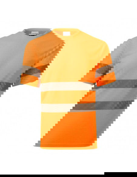 Grid knit, 100% polyester segmented reflective stripes high visibility clothing, quick-drying fluorescent fabric, segmented reflective stripes, cut with side seams, neckline finished with 1:1 rib knit, reinforcing seams on shoulders, certified according to EN ISO 20471 (class 2) and EN ISO 13688