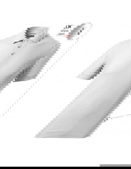Pique, 65% cotton, 35% polyester (colour 12 composition may vary - 85% cotton, 15% viscose) durable, ideal for work environments, cut with side seams, collar and cuffs with double decorative embossing made of 1:1 rib knit, pleats with 3 buttons in the colour of the material, inner part of the hem finished with tape made of the same material as the shirt, shoulder seams reinforced with tape, Product available in two versions: with or without a company label on the sleeve hem (see colour chart). Option without a label only while stocks last.