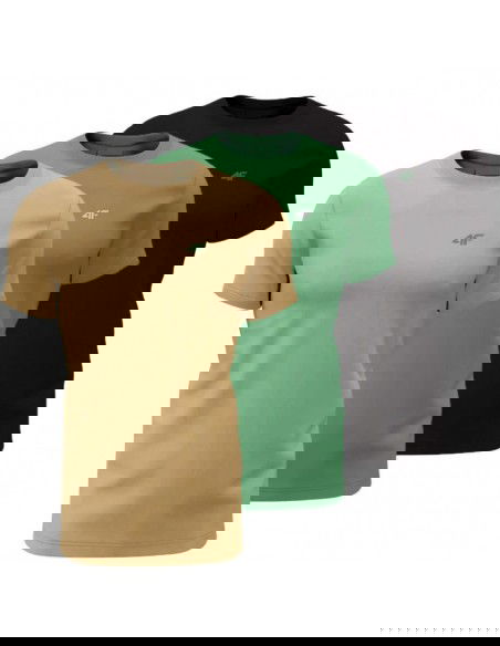 Men's T-shirt 4F M3094 3-pack beige, olive, black 4FWSS25TTSHM3094 92S