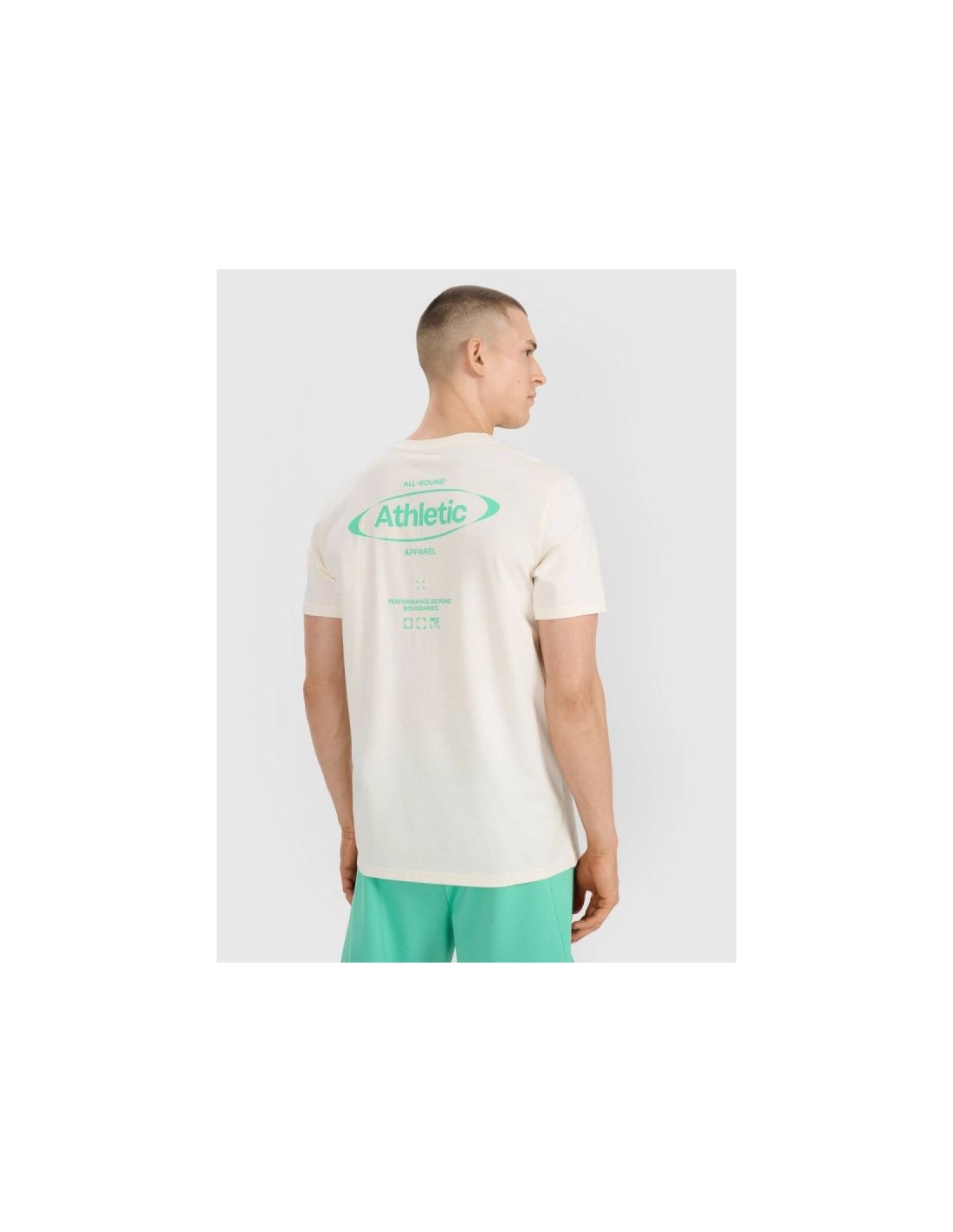 4F men's T-shirt with print - comfort and durability for everyday use The 4F men's T-shirt is the perfect choice for those who value comfort and functionality. Its regular fit and standard length ensure freedom of movement and a natural fit. Made of 100% cotton, the T-shirt is soft, breathable, and highly durable. The 180 gsm single jersey fabric provides optimal thickness, durability, and a smooth, flexible structure. The crew neckline with a subtle ribbed finish enhances comfort, while the "4F All Round Athletic Apparel" logo print on the back emphasizes the garment's athletic appeal. Key features: Weight 180 gsm – durable and comfortable material Size range S-3XL – fits a variety of body shapes Regular fit – comfortable and loose fit 100% cotton – soft, breathable and skin-friendly Single jersey fabric – smooth and flexible structure Round neckline with light ribbed detailing – a classic, comfortable finish Print on the back - "4F All Round Athletic Apparel" inscription emphasizing the sporty character
