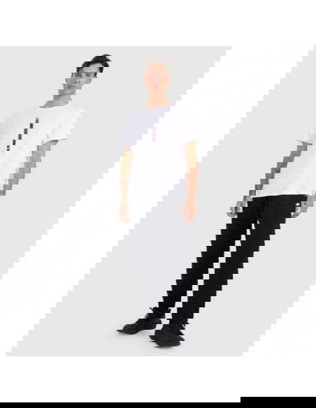 Men's regular printed T-shirt – a universal choice for everyday wear This men's short-sleeved T-shirt in a classic regular fit is a versatile wardrobe staple. Its comfortable fabric and bold print on the front make it perfect for everyday styling and active wear. CHARACTERISTICS: Cut – regular, guarantees freedom of movement and comfort of wearing. Intended use – for everyday use, for work or school, for the city and free time. Material – soft and airy knit fabric ensuring comfort of use. Print – front brand motif emphasizing the sporty style and character of the model. Composition – dominant cotton or a blend with elastic fibers ensures durability and comfort. Weight – medium, suitable for year-round wear and various occasions. The T-shirt can be worn alone on warmer days or as a base layer under a sweatshirt or jacket. It pairs perfectly with sweatpants, jeans, or joggers, creating a comfortable and stylish ensemble. Check also: men's t-shirts , men's pants