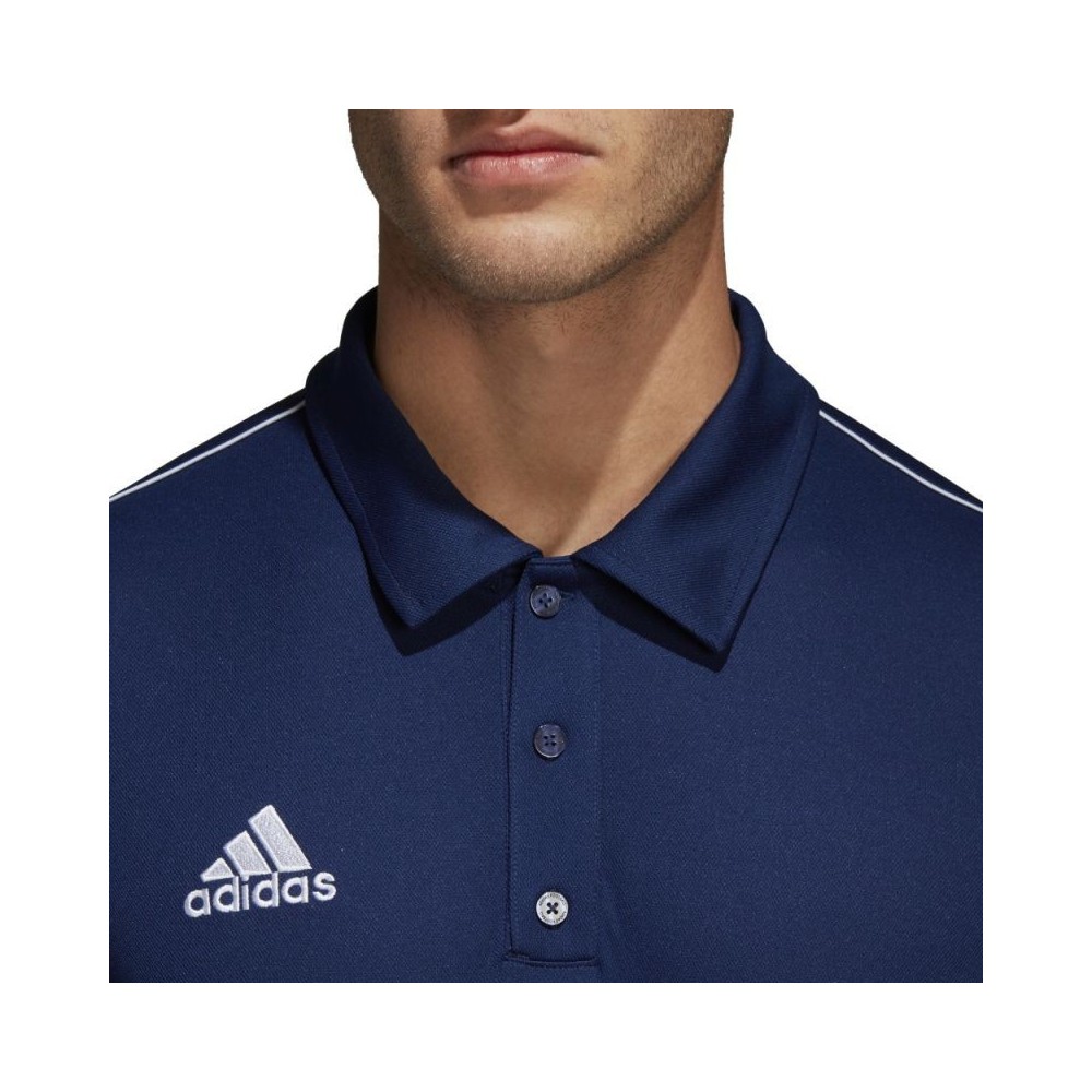 Ανδρικόμπλουζάκι adidas CORE18 POLOμε κοντά μανίκια. Αυτή η φανέλα σχεδιάστηκε για σωματικά ενεργά άτομα, ιδίως ποδοσφαιριστές. Το πουκάμισο έχεικολάρο σεστιλ πόλομε κλείσιμομε τρία κουμπιά.Το πουκάμισο είναι κατασκευασμένο από ύφασμαclimalite®.Είναι ένασυνθετικό ύφασμα 100%, απορροφά τον ιδρώτα από την επιφάνεια του δέρματος και το στραγγίζει στο εξωτερικό του στρώμα για να εξατμιστεί πιο γρήγορα.Διατηρεί το σώμα στεγνό, δίνοντας μια αίσθηση άνεσης.Προστατεύει το σώμα από την υπερθέρμανσησε υψηλές θερμοκρασίες, επιτρέποντας στο σώμα να διατηρήσει μια σταθερή θερμοκρασία, είναι μια βελτιωμένη αθλητική απόδοση. Μειώνει την πιθανότητα κρυολογήματος μετά την άσκηση. Η περικοπή του πουκάμισου είναι δωρεάν. Το πουκάμισο ήταν εφοδιασμένο με ένα επιπλέονκουμπίπου ήταν ραμμένο στην ετικέτα. Το λογότυπο τηςAdidasσε λευκό χρώματοποθετείται στο δεξί στήθος,ενώ στην αριστερή πλευρά υπάρχει επίσης μιαεπιγραφή λευκού κλαμίτηστο κάτω μέρος του πουκάμισου.