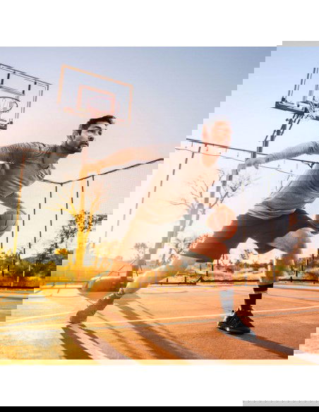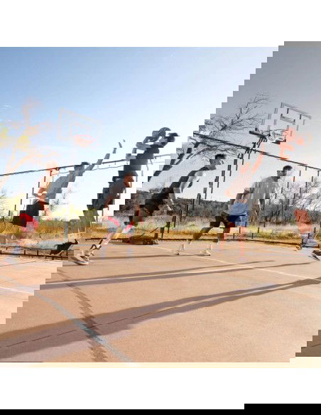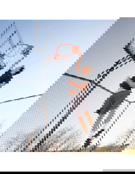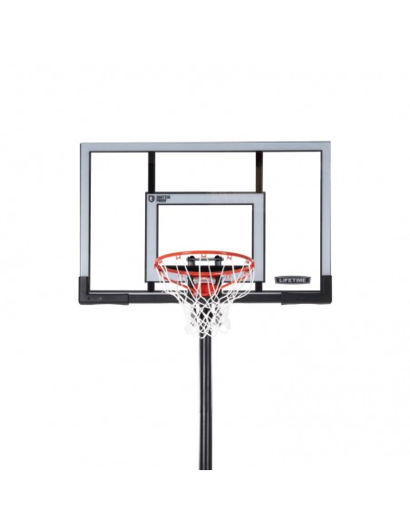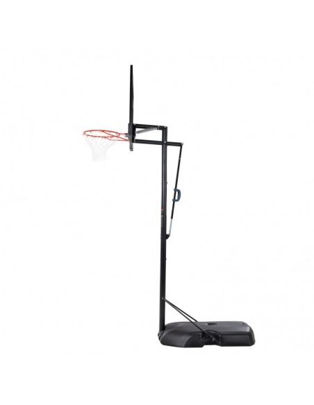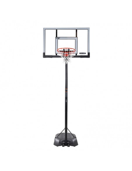 Η φορητή βάση μπάσκετ διαθέτει ταμπλό 50" κατασκευασμένο με τεχνολογία Steel-Framed Shatter-Proof. Η τεχνολογία Shatter-Proof εγγυάται πολλά χρόνια αντοχής και ανθεκτικότητας στις κρούσεις χάρη στην επίστρωση από πολυκαρβονικό Makrolon® υψηλής ποιότητας. Η τεχνολογία Steel-Framed είναι ένα ανθεκτικό χαλύβδινο πλαίσιο του ταμπλό. Τηλεσκοπική ρύθμιση ύψους. ο πίνακας επιτρέπει τη γρήγορη και εύκολη ρύθμιση σε διάφορα ύψη που κυμαίνονται από 240 έως 300 cm, εξασφαλίζοντας άνετο και ασφαλές παιχνίδι σε οποιοδήποτε επίπεδο προόδου. Το σύνολο συμπληρώνεται από μια ανθεκτική στεφάνη με έναν ευέλικτο, ανακλινόμενο μηχανισμό Slam-It® που βασίζεται σε ένα σύστημα διπλού ελατηρίου και είναι ανθεκτικό στις συνθήκες αδιάβροχο νάιλον πλέγμα και ένα στρογγυλό κοντάρι με διάμετρο 7,62 cm. Η βάση HDPE με χωρητικότητα 45 λίτρων γεμάτη με νερό ή άμμο παρέχει πλήρη σταθερότητα της βάσης.