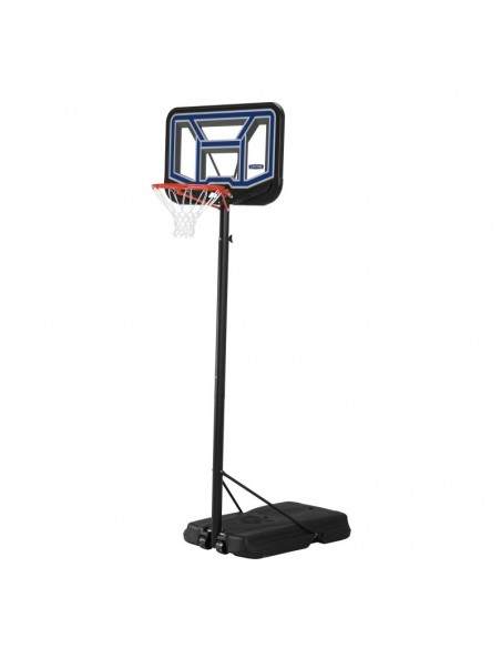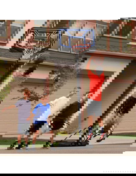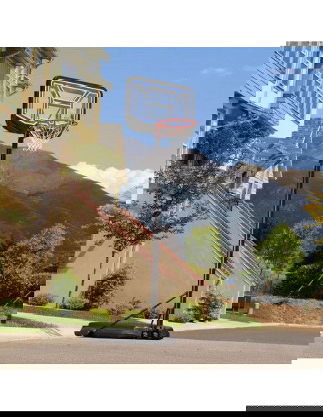 Η φορητή βάση μπάσκετ διαθέτει ταμπλό 44" κατασκευασμένο με τεχνολογία Steel-Framed Shatter-Proof. Η τεχνολογία Shatter-Proof εγγυάται πολλά χρόνια αντοχής και ανθεκτικότητας στις κρούσεις χάρη στην επίστρωση από πολυκαρβονικό Makrolon® υψηλής ποιότητας. Η τεχνολογία Steel-Framed είναι ένα ανθεκτικό χαλύβδινο πλαίσιο του ταμπλό. Τηλεσκοπική ρύθμιση ύψους. Ο πίνακας επιτρέπει τη γρήγορη και εύκολη ρύθμιση σε διάφορα ύψη, που κυμαίνονται από 228 έως 304 cm, εξασφαλίζοντας άνετο και ασφαλές παιχνίδι σε κάθε επίπεδο προόδου. Το σύνολο συμπληρώνεται από ένα ανθεκτικό στεφάνι με νάιλον πλέγμα ανθεκτικό στις καιρικές συνθήκες και ένα στρογγυλό κοντάρι με διάμετρο 6,9 cm. Το HDPE με χωρητικότητα 45 λίτρων, γεμάτο με νερό ή άμμο, εξασφαλίζει την πλήρη σταθερότητα της βάσης. Ένα ιδανικό σετ για αρχάριους και μέσους παίκτες μπάσκετ.