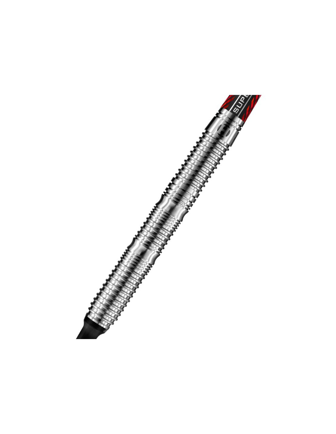 90% tungsten – ensures durability, optimal balance and precise throws Medium weight and parallel barrel profile – stable flight path, suitable for players who prefer a balanced grip Three distinct grip zones ensure a secure and comfortable hold of the dart Combination of rings and recesses – a unique structure that increases control over the throw Recesses between grip zones – enable repeatable and precise finger positioning Soft Tip – plastic tips designed for playing on electronic dartboards Designed and manufactured in the UK – high quality and precision craftsmanship Accessories included: Supergrip Ignite Red Shafts – providing excellent stability Prime feathers – made of durable material