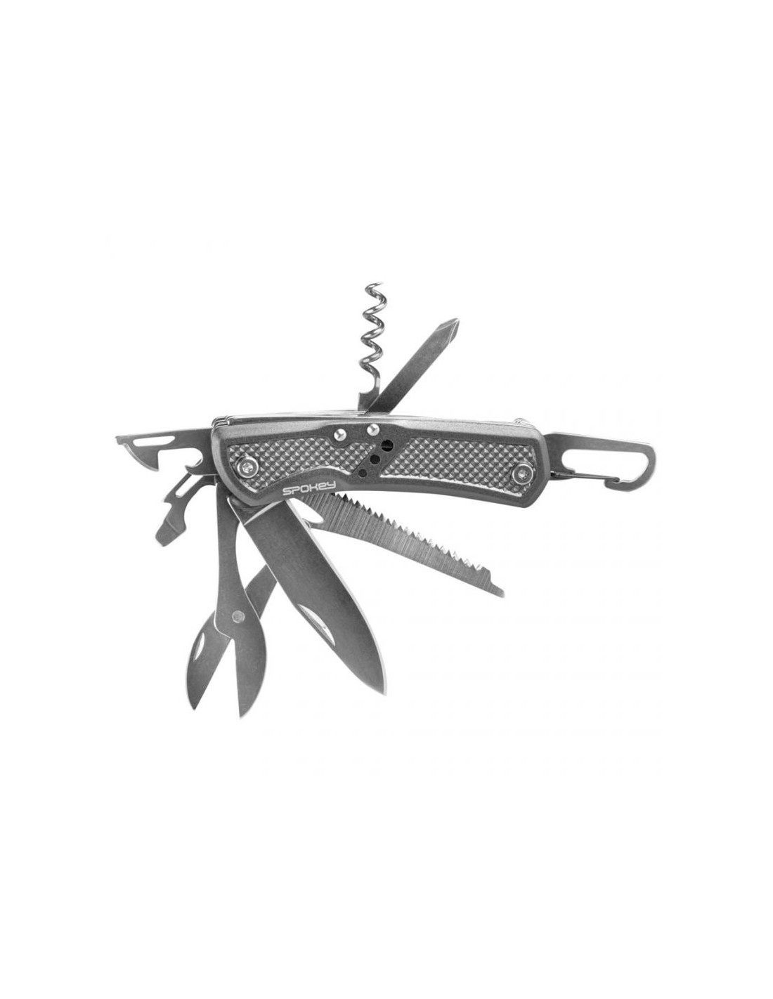 - Ο σουγιάς τσέπης Spokey περιέχει τα στοιχεία που χρειάζονται σε κάθε ταξίδι πεζοπορίας: μαχαίρι, ψαλίδι, πριόνι, ανοιχτήρι κονσέρβας, ανοιχτήρι μπουκαλιών, πλακέ κατσαβίδι, καραμπίνερ, τιρμπουσόν, κωνικό κατσαβίδι.