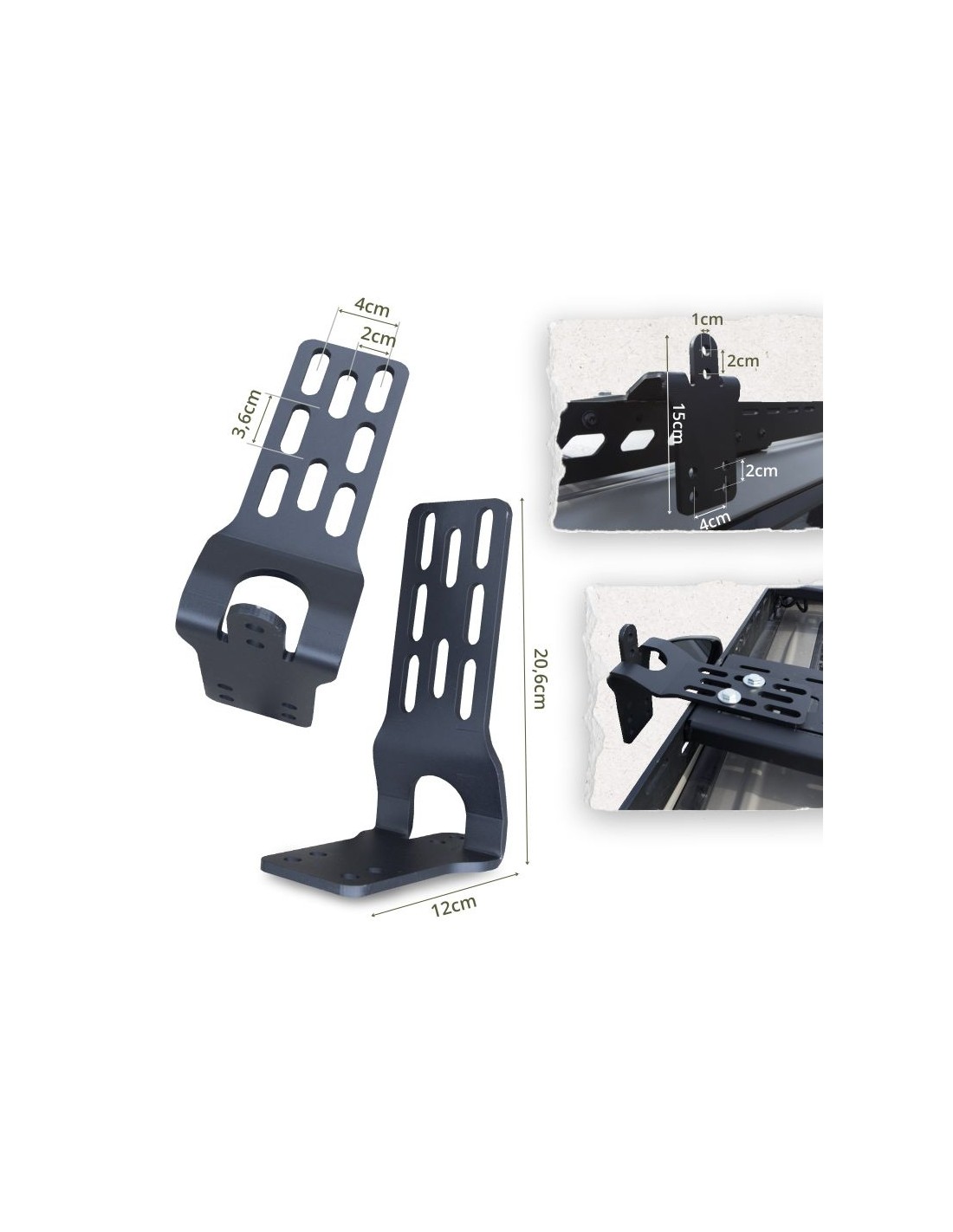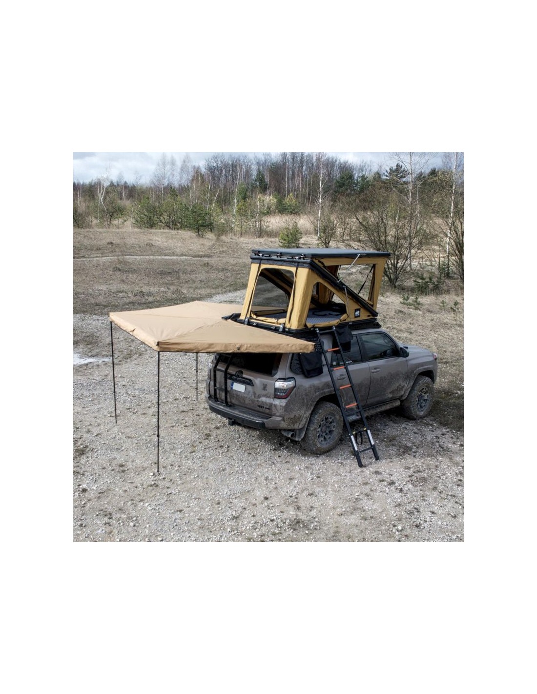 Properties: The BATWING 270 L freestanding car awning is a great way to organize the space around your car. The canopy extends 270° around the car, creating a large, shaded space where you can relax on hot days. Thanks to the fact that the awning has fully foldable legs, you can fully utilize the entire space. You can easily fit chairs, a camping table or a thermal refrigerator there. On a rainy morning, the solid, waterproof fabric (PU 2000 mm) will provide you with a dry surface where you can prepare breakfast or spend time relaxing, breathing fresh air. Technical data: Dimensions: 250 cm (radius) Weight: 25.4 kg Cover dimensions: 268 x 20 x 18 cm (L x W x H) Mounting method: mounted to roof crossbars or roof platform using the included angle brackets or to the OFFLANDER Triangle series tent using the T-SLOT technology (tent mounting accessories not included)   The set includes: 4 posts, a rope to attach the end of the awning, 4 ropes and 4 pegs, 2 assembly keys   Color: khaki   Material: cotton blend + polyester Oxford 420D (PU 2000-3000)