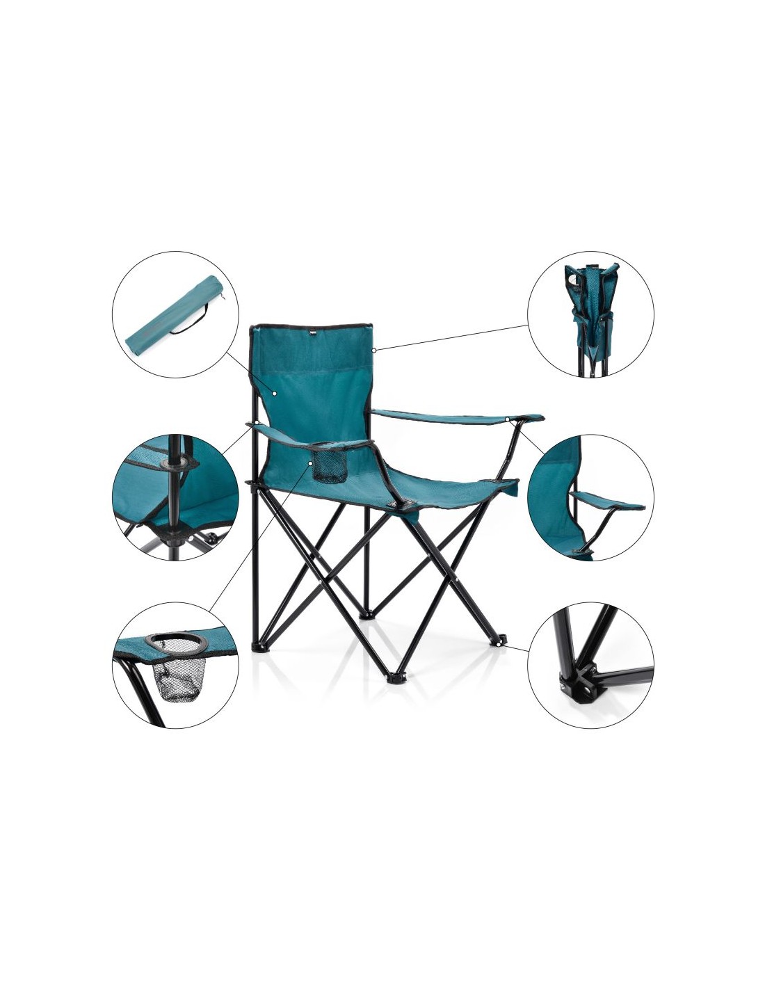 METEOR QUAY SEA FOLDING CHAIR Both light and solid - the chair weighs only 2 kg, but is capable of supporting a load of up to 100 kg, which is an expression of its reliability. Designed with functionality in mind , its compact dimensions make it easy to transport and store. Solid and durable - the waterproof seat and powder-coated frame guarantee its long-term use. Easy to use - simple assembly and disassembly, as well as a practical storage bag, make use easier. Focused on ergonomics - armrests with built-in pockets for a phone or water bottle are proof of attention to detail and user comfort. Seat depth : 40 cm Maximum user weight : 100 kg Seat material: 600D Oxford polyester Leg spacing: 43 cm x 44 cm Width : 85 cm Backrest width : 47 cm Armrest width : 11 cm Seat width : 50 cm Gross weight : 2.08 kg Net weight : 2 kg Pocket dimensions : 7 cm x 9 cm Leg dimensions: 4 cm x 3.5 cm Package dimensions in cm: 12 x 15 x 83 Dimensions after folding : 11 cm x 14 cm x 82 cm Height : 78 cm Length : 48 cm Frame material: powder-coated steel Seat height from the ground : 40   *Our camping kits are designed for outdoor use, whether camping, in the garden, or just enjoying the great outdoors. To ensure they last as long as possible, we recommend storing them out of the sun when not in use. **The use of chemical cleaning products is not recommended.