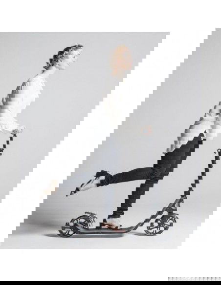 Πολύ άνετο, γρήγορο σκούτερ πόλης για απαιτητικούς χρήστες. Διαθέτει σύστημα γρήγορης αναδίπλωσης. Σούπερ ανθεκτική, ενισχυμένη κατασκευή. Άνετο, αλουμινένιο, διαμορφωμένο τιμόνι με μαλακές λαβές TPR. Κατάστρωμα επενδεδυμένο με μαλακό αφρό EVA. Μακρύ μεταλλικό πίσω φρένο.