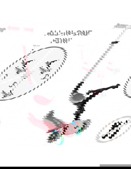 - Οικολογικό σκούτερ όλα-σε-ένα με κάθισμα που μετατρέπεται σε ποδήλατο, περιπατητή και σκούτερ για νήπια. Οι λειτουργίες βόλτας και περιπάτου έχουν σχεδιαστεί για νήπια ηλικίας 15-36 μηνών, ενώ η λειτουργία σκούτερ είναι για παιδιά ηλικίας 3-9+.