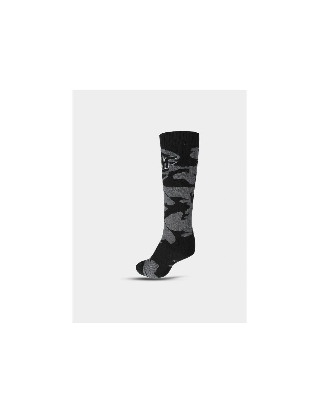 Boys' ski socks - comfort and protection during winter activities These boys' ski socks are designed for maximum comfort and protection during winter activities like skiing and snowboarding. Soft, flexible fibers combined with pressure-free cuffs ensure a secure fit and comfort, even during long hours on the slopes. Warm materials effectively protect against the cold , while strategic reinforcements in key areas help reduce the risk of chafing and pressure from winter or ski boots. Seamless construction enhances comfort and prevents skin irritation. This model features an extended cut that reaches mid-calf , improving thermal protection and sock stability. The set includes one pair , and the set is complemented by the 4F logo on the calf and an attractive all-over print. PRODUCT FEATURES: Size range: 32–40 Mid-calf cut for better protection and stability Synthetic material – durable and easy to care for Flexible construction that fits snugly to the foot Seamless construction reduces the risk of irritation Pressure-free, strategically placed cuffs Reinforcements in key areas to protect against abrasion Allover print and 4F logo on the calf 1 pair in the set