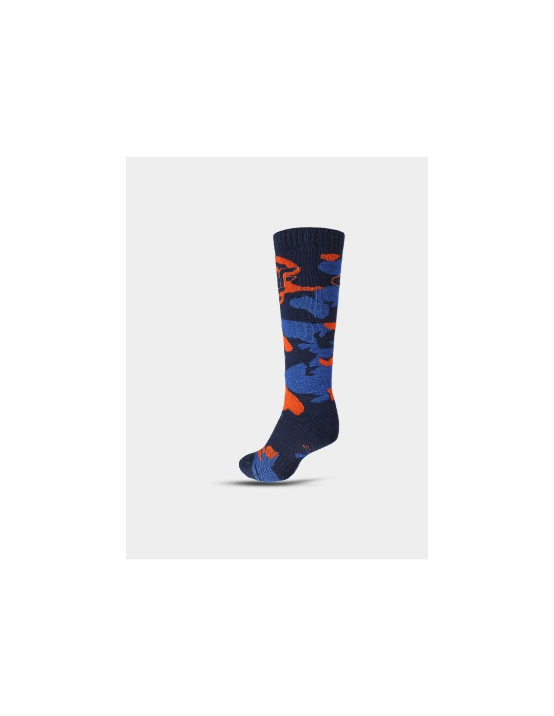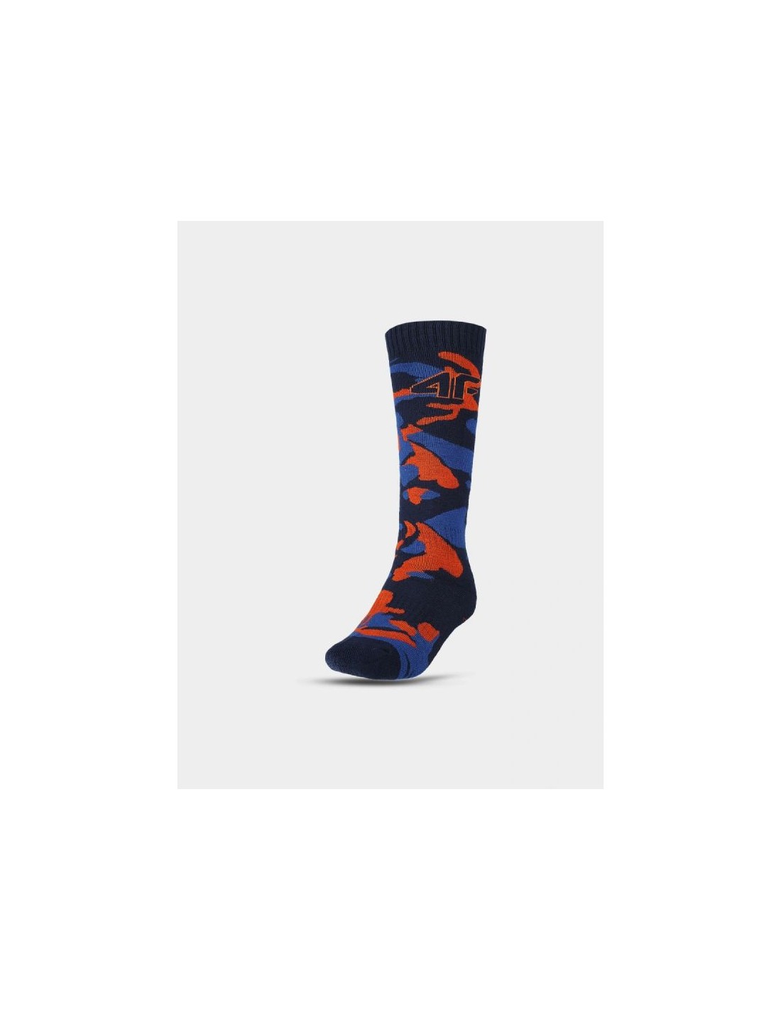 Boys' ski socks - comfort and protection during winter activities These boys' ski socks are designed for maximum comfort and protection during winter activities like skiing and snowboarding. Soft, flexible fibers combined with pressure-free cuffs ensure a secure fit and comfort, even during long hours on the slopes. Warm materials effectively protect against the cold , while strategic reinforcements in key areas help reduce the risk of chafing and pressure from winter or ski boots. Seamless construction enhances comfort and prevents skin irritation. This model features an extended cut that reaches mid-calf , improving thermal protection and sock stability. The set includes one pair , and the set is complemented by the 4F logo on the calf and an attractive all-over print. PRODUCT FEATURES: Size range: 32–40 Mid-calf cut for better protection and stability Synthetic material – durable and easy to care for Flexible construction that fits snugly to the foot Seamless construction reduces the risk of irritation Pressure-free, strategically placed cuffs Reinforcements in key areas to protect against abrasion Allover print and 4F logo on the calf 1 pair in the set