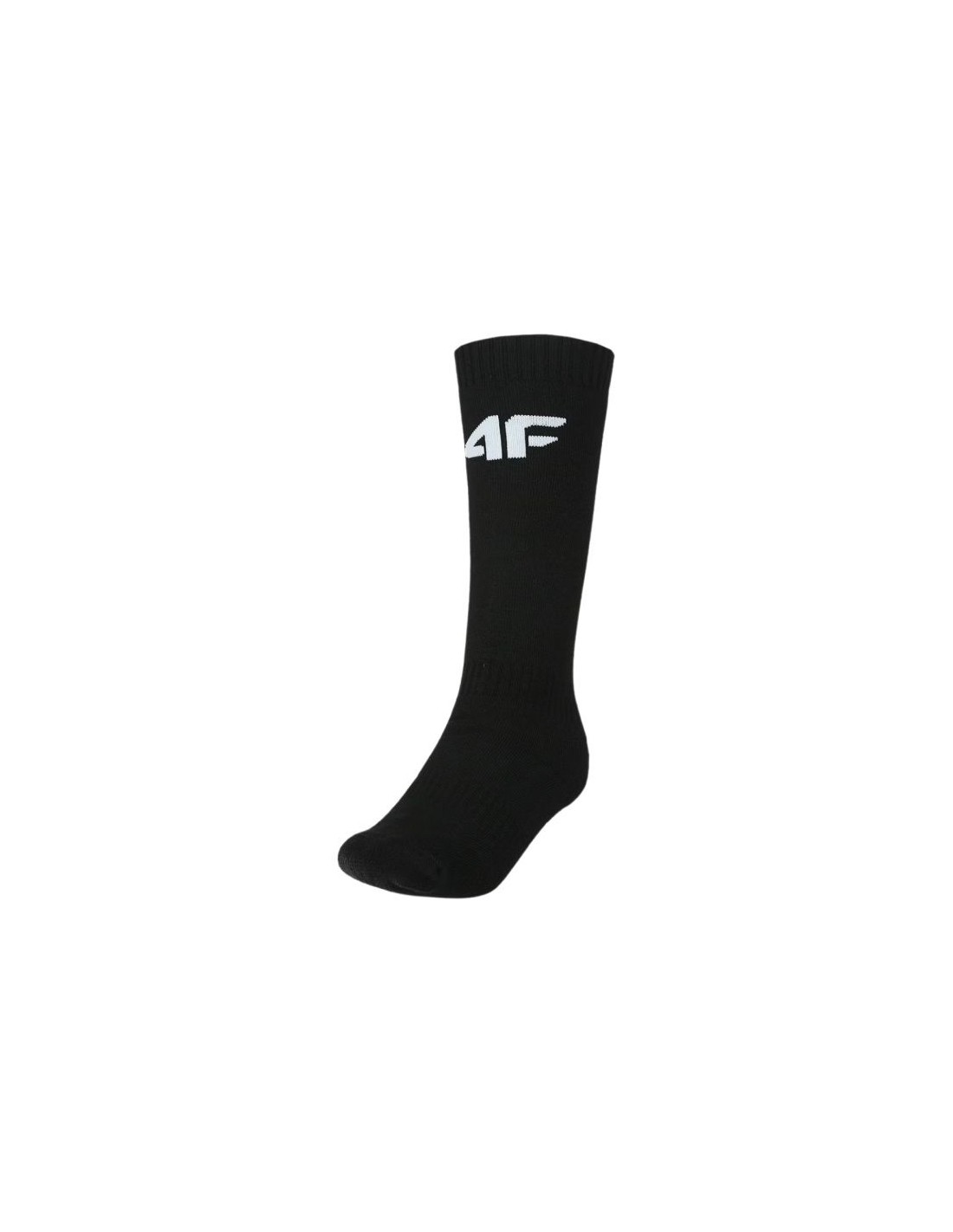 Children's ski socks 4F U167 black 4FJWAW24UFSOU167 21S Properties: 4F U167 ski socks designed for comfort during winter fun on the slopes. Made of soft, flexible material that adapts perfectly to the foot. They protect against cold thanks to their longer cut, reaching up to mid-calf. Seamless construction and reinforcements in strategic places. 4F logo in a contrasting color on the shin. Material: 71% acrylic, 25% polyamide, 3% polyester, 1% elastane