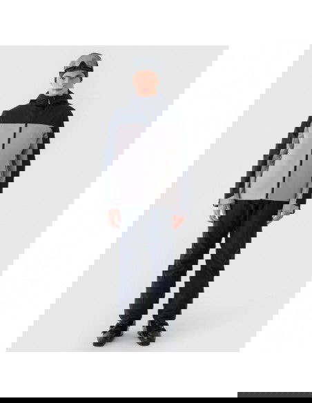 Men's hooded ski jacket , suitable for everyday use and low-impact sports. It features a slim fit, regular fit, and standard hip-length measurements. The 4F men's ski jacket features a NeoDry 5000/3000 membrane, meaning it's suitable for light rain or snow, while providing optimal moisture management during everyday activities. This synthetic down fill is more durable and easier to care for than natural down; it retains its insulating properties even when wet for extended periods, dries significantly faster, and is moisture-resistant. Furthermore, it requires minimal washing and dry cleaning. men's ski jacket cut: regular, which comfortably fits the figure standard cut reaching to the hips polyester, quilted lining the hydrophobic coating of the outer material limits the absorption of moisture and taped critical seams in the hood and shoulders integrated hood with a profiled visor and adjustable volume and depth high collar cuffs with Velcro adjustment 2 side pockets with zipper closure internal, open goggle pocket made of breathable mesh internal Velcro pocket ski pass pocket on the left arm one-way main zipper with internal wind flap bottom circumference adjustment using a tunnel drawstring with stoppers synthetic down filling provides adequate insulating properties even in humid conditions NeoDry 5000/3000 membrane protects against light rain or snowfall