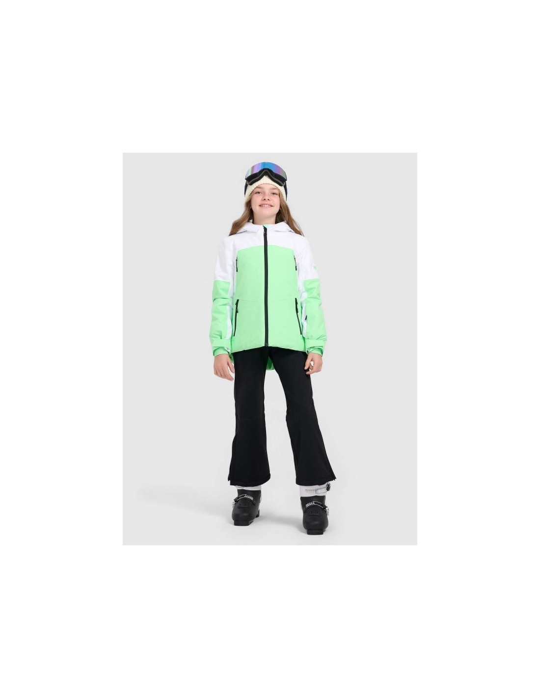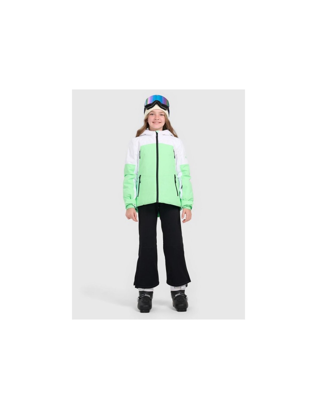 Winter ski jacket for girls with NeoDry 8000/5000 membrane and Grow-Up system This winter ski jacket was designed to provide your child with maximum warmth, protection, and comfort during winter activities. Equipped with a NeoDry 8000/5000 membrane, which guarantees waterproofness, breathability, and windproofing, it performs perfectly both on the slopes and during everyday winter walks. Hydrophobic impregnation allows moisture to roll off the material's surface, while taped seams further protect the fabric from water. The Grow-Up system allows for extended sleeves, allowing the jacket to grow with your child. Reflective elements also enhance safety after dark, ensuring better visibility on the trail and slopes. This model combines durable protection, functionality, and comfort—the perfect companion for winter adventures. Key features: NeoDry 8000/5000 membrane – protects against moderate rainfall and supports breathability. Hydrophobic coating – protects the material against moisture penetration. All seams are taped – increasing waterproofness. Lightweight polyester insulation – provides warmth without the weight. Quilted lining – improves thermal comfort. Regular fit – comfortable fit and freedom of movement. Integrated hood – protects your head from snow. Underarm ventilation – supports temperature regulation. Ski pass pocket – quick access to your ski pass. Side pockets with zippers – safe storage of small items. Inner pocket – perfect for goggles or accessories. Integrated powder skirt and inner cuffs – block snow from getting inside. Grow-Up System – sleeve length adjustment. Adjustable bottom – protection against cold is provided by drawstrings with stoppers. Reflective elements – increase visibility after dark.