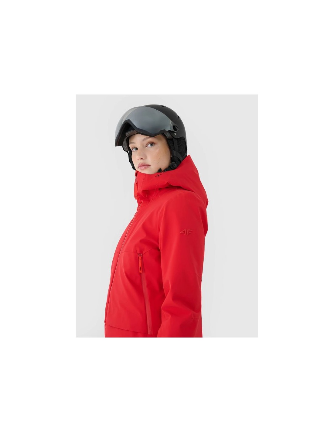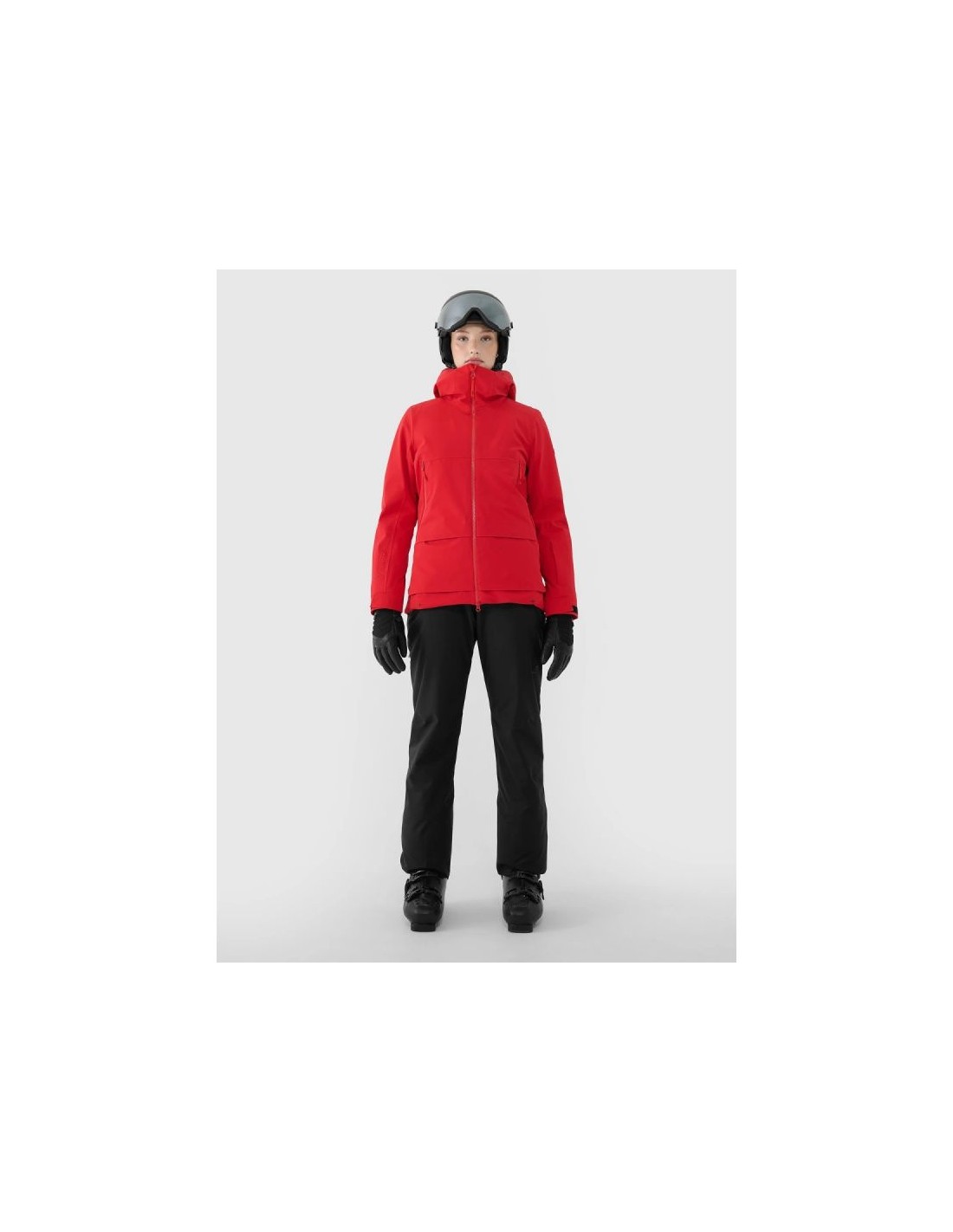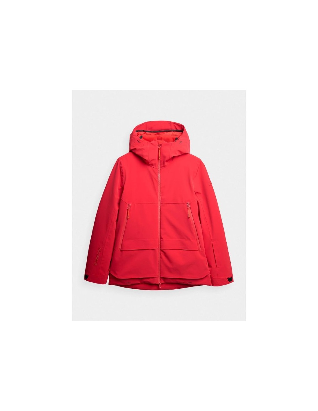 Women's 4FPro ski jacket - maximum protection and comfort on the slopes The women's 4FPro ski jacket is a technologically advanced model designed for long hours spent on the slopes in challenging winter conditions. A Dermizax 20,000/20,000 membrane, PrimaLoft® Black Insulation Eco insulation, and flexible 4Way Stretch construction guarantee effective protection against snow, wind, and moisture, while maintaining high breathability and complete freedom of movement. Size range XS–4XL – fits a variety of body shapes Regular fit – comfortable fit without restricting movement Standard hip length – protection and thermal comfort Dermizax 20000/20000 membrane – high water resistance and breathability Water resistance 20,000 mm H?O – protection against heavy rainfall Breathability 20,000 g/m²/24h – effective moisture wicking PrimaLoft® Black Insulation Eco – lightweight, warm and breathable (100% recycled) 4Way Stretch technology – material stretches in all directions Teflon Shield coating – increased resistance to dirt Hydrophobic impregnation – limits moisture absorption Fully taped seams – complete protection against water and snow Integrated hood – adjustable volume and depth + profiled visor High collar with soft tricot - protects the neck from the cold Underarm ventilation – adjustable with a two-way zipper Laser ventilation holes in the collar - improved air circulation Velcro adjustable cuffs – precise fit Inner cuffs with thumbholes - additional hand protection 4 outer pockets – 2 with zippers + 2 with Velcro Goggle pocket + cloth – inside the jacket Internal zippered pocket – for phone or documents Pocket on the arm - for a ski pass Two-way main zipper - with internal wind flap Bottom circumference adjustment – tunnel drawstring with stoppers 3D Air Mesh elements on the shoulders – comfortable ski carrying TECHNICAL PARAMETERS: Membrane: Dermizax™ 20000/20000 Water resistance: 20,000 mm H?O Breathability: 20,000 g/m²/24h Filling: PrimaLoft® Black Insulation Eco (100% recycled polyester)