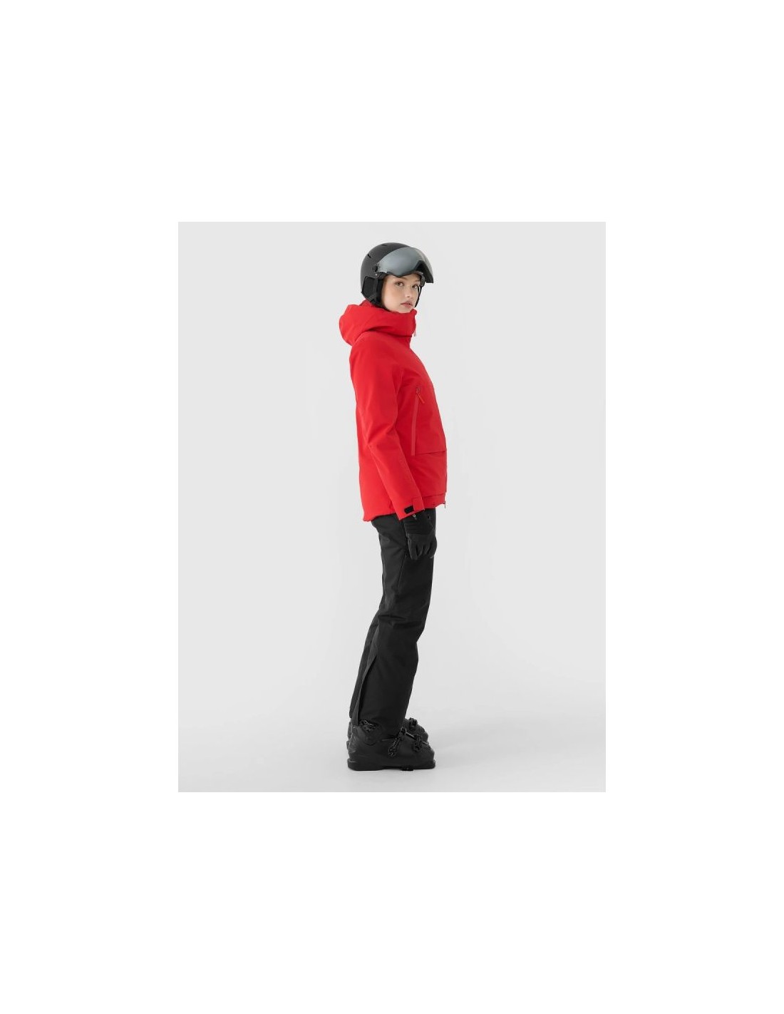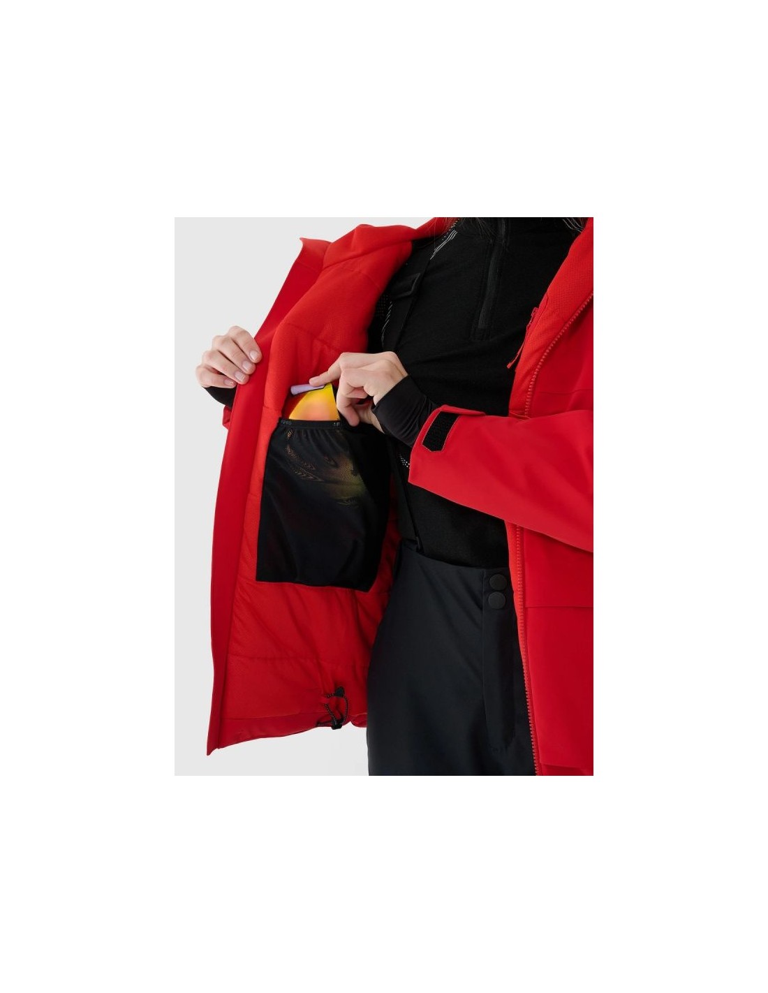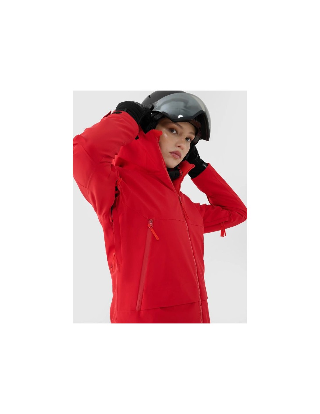 Women's 4FPro ski jacket - maximum protection and comfort on the slopes The women's 4FPro ski jacket is a technologically advanced model designed for long hours spent on the slopes in challenging winter conditions. A Dermizax 20,000/20,000 membrane, PrimaLoft® Black Insulation Eco insulation, and flexible 4Way Stretch construction guarantee effective protection against snow, wind, and moisture, while maintaining high breathability and complete freedom of movement. Size range XS–4XL – fits a variety of body shapes Regular fit – comfortable fit without restricting movement Standard hip length – protection and thermal comfort Dermizax 20000/20000 membrane – high water resistance and breathability Water resistance 20,000 mm H?O – protection against heavy rainfall Breathability 20,000 g/m²/24h – effective moisture wicking PrimaLoft® Black Insulation Eco – lightweight, warm and breathable (100% recycled) 4Way Stretch technology – material stretches in all directions Teflon Shield coating – increased resistance to dirt Hydrophobic impregnation – limits moisture absorption Fully taped seams – complete protection against water and snow Integrated hood – adjustable volume and depth + profiled visor High collar with soft tricot - protects the neck from the cold Underarm ventilation – adjustable with a two-way zipper Laser ventilation holes in the collar - improved air circulation Velcro adjustable cuffs – precise fit Inner cuffs with thumbholes - additional hand protection 4 outer pockets – 2 with zippers + 2 with Velcro Goggle pocket + cloth – inside the jacket Internal zippered pocket – for phone or documents Pocket on the arm - for a ski pass Two-way main zipper - with internal wind flap Bottom circumference adjustment – tunnel drawstring with stoppers 3D Air Mesh elements on the shoulders – comfortable ski carrying TECHNICAL PARAMETERS: Membrane: Dermizax™ 20000/20000 Water resistance: 20,000 mm H?O Breathability: 20,000 g/m²/24h Filling: PrimaLoft® Black Insulation Eco (100% recycled polyester)