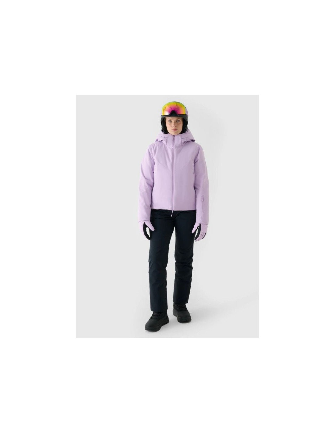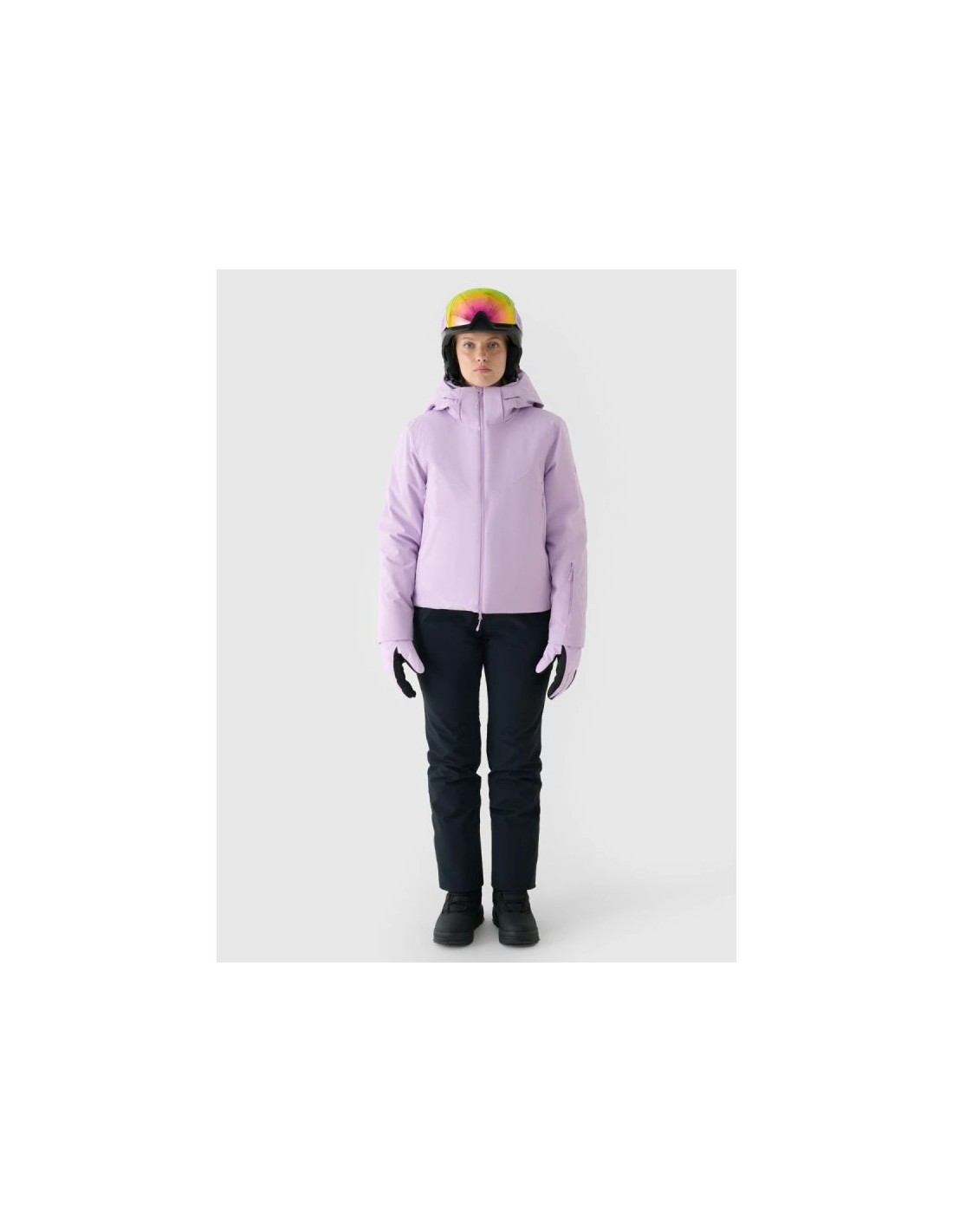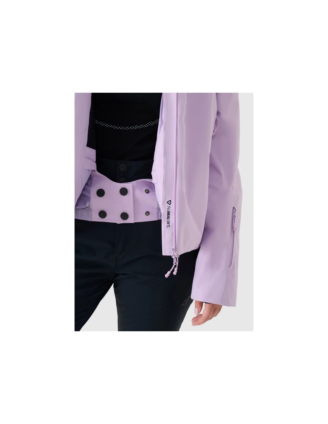 Women's ski jacket with hood - maximum protection in extreme conditions This women's hooded ski jacket is designed for winter activities requiring the highest level of protection against cold, wind, and moisture during long hours on the slopes. Its regular fit comfortably fits the body, while the standard hip-length and extra volume provide effective thermal insulation on cold and frosty days. Protection in harsh conditions is provided by the advanced Dermizax 20,000 membrane from Japanese company Toray and PrimaLoft Black Insulation Eco , made from 100% recycled polyester. The whole package is complemented by taped seams, hydrophobic impregnation , and functional ski features that guarantee comfort, safety, and freedom of movement on the slopes. PRODUCT FEATURES: Regular fit – comfortable fit to the body Size range: XXS–XXL Standard hip length Dermizax 20000/10000 membrane – very high water resistance and breathability Water resistance: 20,000 mm H?O Breathability: 10,000 g/m²/24h PrimaLoft Black Insulation Eco – lightweight, warm and breathable, 100% recycled Hydrophobic impregnation that limits moisture absorption Fully taped, waterproof seams Polyester lining with black silver mesh thermal insulation panel Detachable hood with a profiled visor and adjustable volume and depth High collar insulated with soft tricot Internal elastic cuffs with thumbholes Non-adjustable outer cuffs Underarm ventilation with one-way zipper adjustment 2 side pockets with laminated zippers Internal elastic mesh goggle pocket Internal zip pocket for valuables Two-way, waterproof main zipper with a wind flap Bottom circumference adjustment using a tunnel drawstring with stoppers Integrated snow skirt with snap adjustment Internal SOS patch with emergency numbers