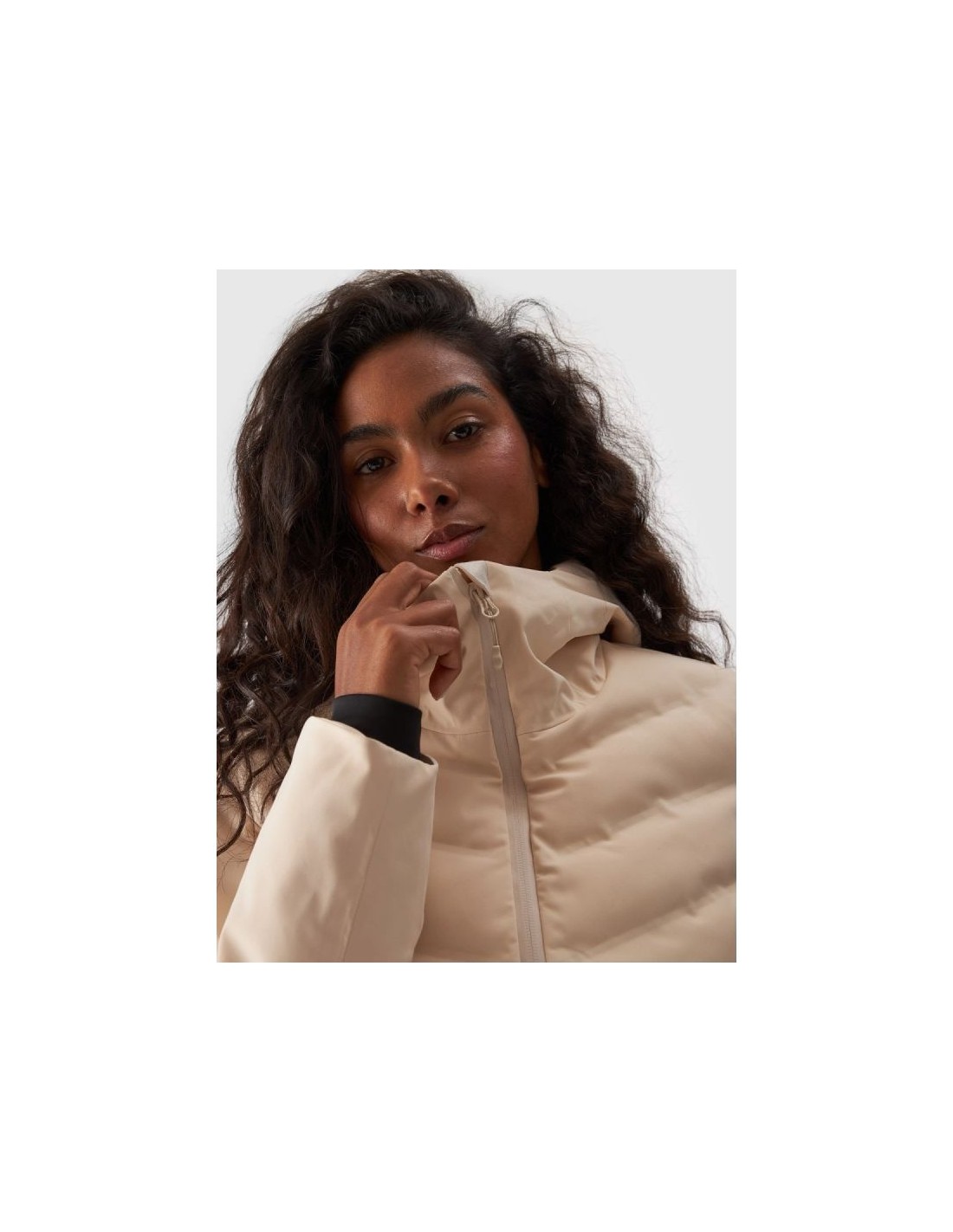 Women's ski jacket with hood - comfort and protection on the slopes and every day This women's hooded ski jacket is designed for moderate-intensity sports activities and everyday wear in winter conditions . Its regular fit comfortably conforms to the body, while its increased volume makes the jacket an effective insulating layer on cool and cold days. The NeoDry 10000/8000 membrane, combined with a hydrophobic impregnation, protects against moderate snowfall and rain while ensuring good breathability. Lightweight polyester insulation arranged in quilted panels guarantees thermal comfort without excessive weight. PRODUCT FEATURES: Regular fit – comfortable fit to the body Size range: XS–XXL Standard length to the hip line NeoDry 10000/8000 membrane – protection against moderate rainfall and good breathability Water resistance: 10,000 mm H?O Breathability: 8000 g/m²/24h Hydrophobic impregnation that limits moisture absorption Quilted panels with polyester insulation for thermal comfort Integrated hood with depth adjustment High collar protects the neck from the wind Velcro adjustable cuffs and inner knit cuffs Underarm ventilation adjustable with a zipper hidden in the seam 2 side pockets with zippers Internal mesh goggle pocket Internal Velcro pocket for small items Ski pass pocket on the left arm Two-way main zipper with internal storm flap Bottom circumference adjustment using a tunnel drawstring with stoppers Integrated snow skirt with snap adjustment